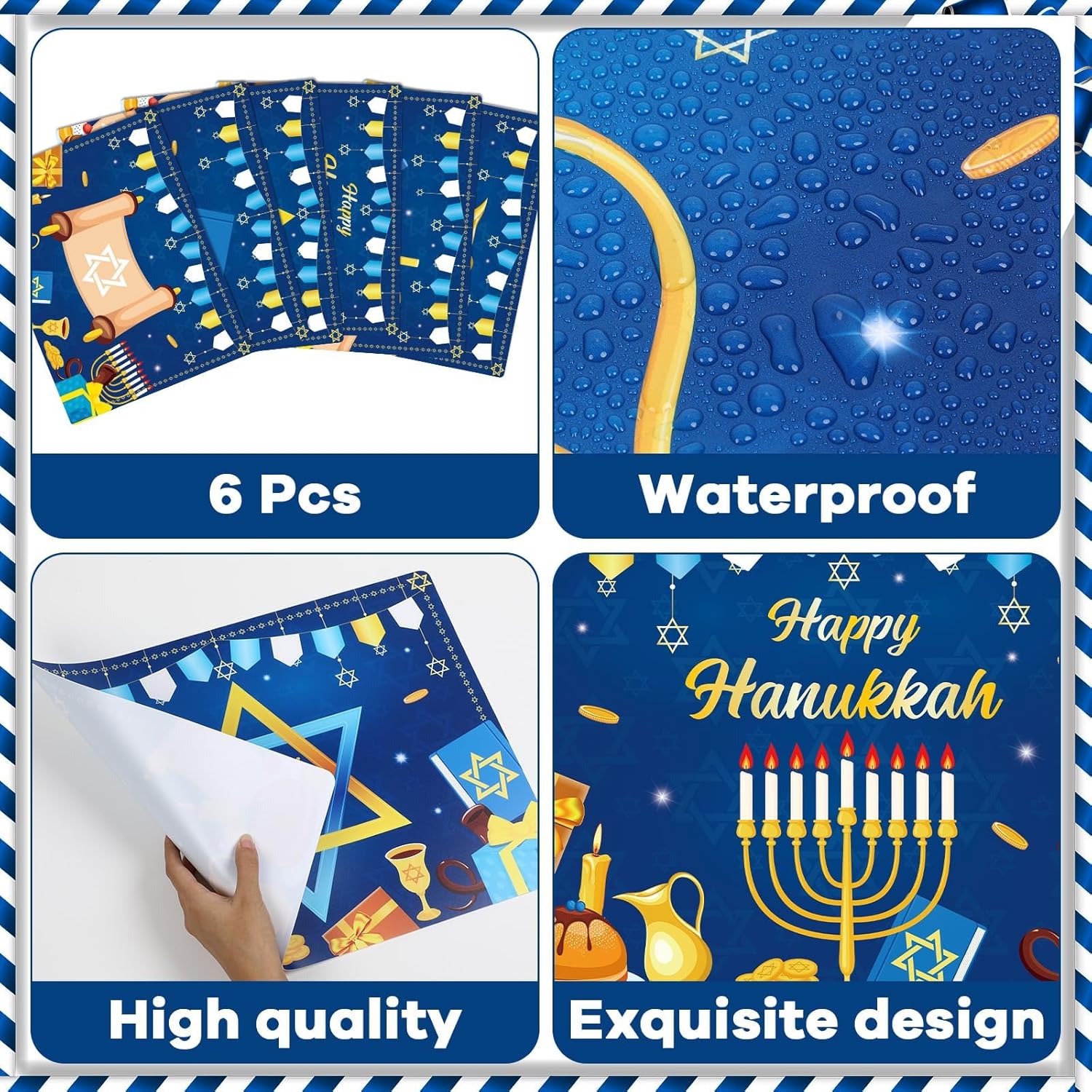 Hanukkah Placemats Set of 6 Festival of Lights Table Mats Plastic Passover Recyclable Place Mats Washable Holiday Table Decoration for Indoor Outdoor Hanukkah Party Kitchen Dining