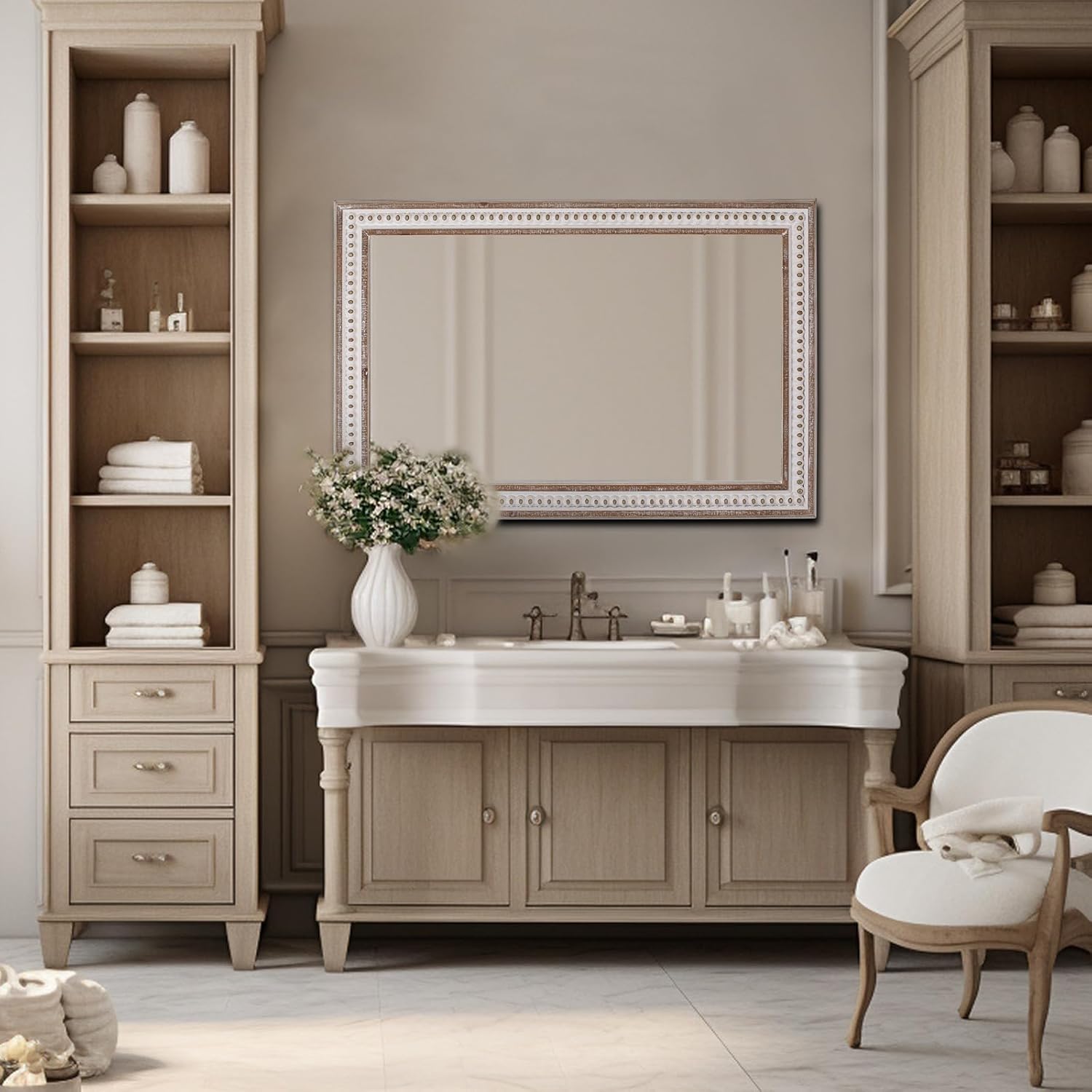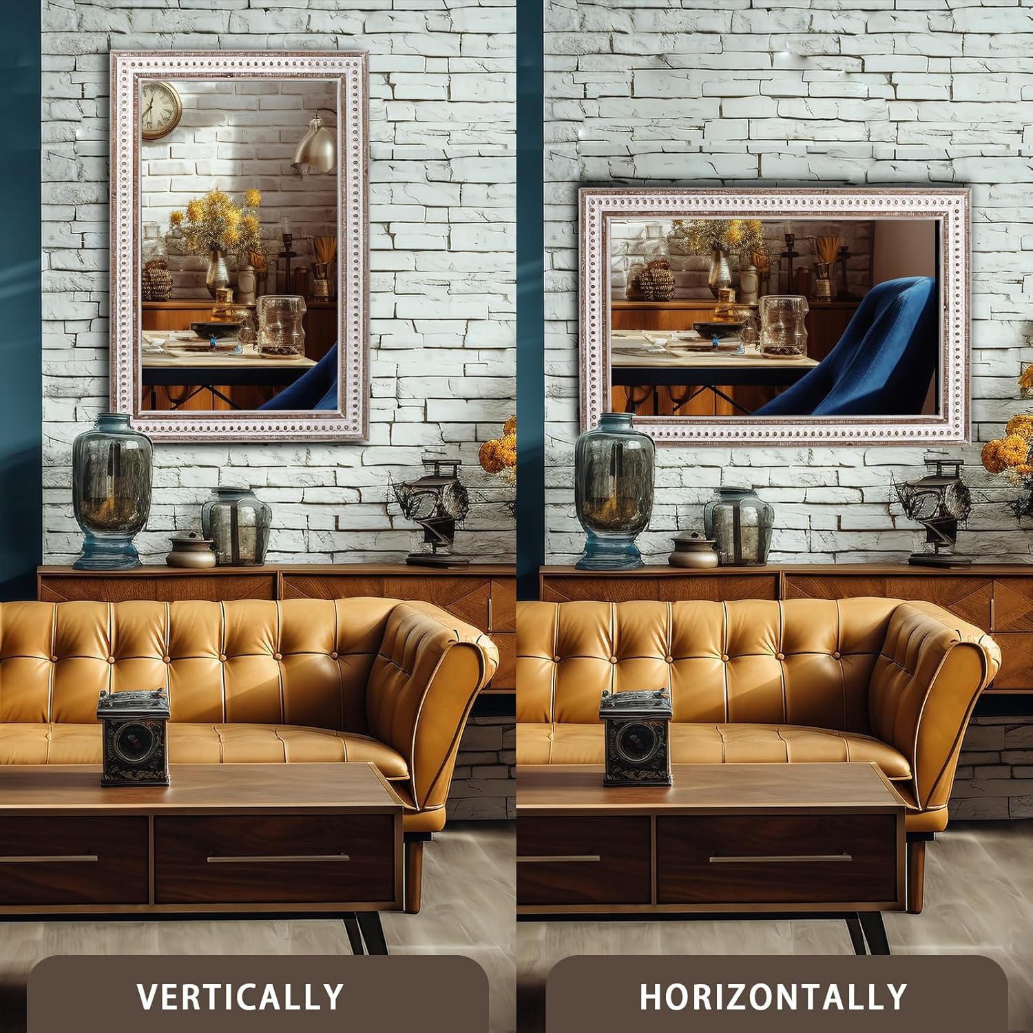 - Versatile Hanging Options: Designed for flexibility, this rectangular wall mirror can be hung vertically or horizontally, making it ideal for various spaces and needs. Whether you need an over-sink bathroom mirror or a decorative mirror for the hallway, this 23 x 35'' mirror adapts effortlessly to fit your room's layout and style