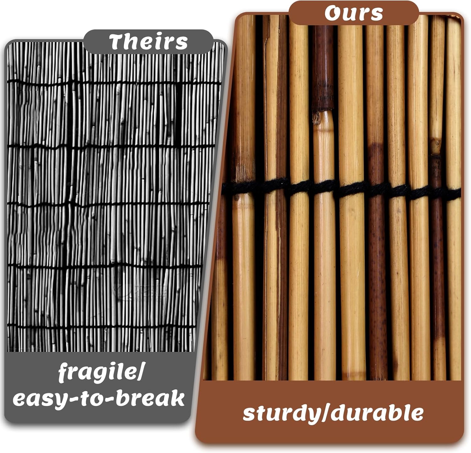 - 【Friendly Tips You Can't Miss]- 1. These bamboo reed fenceare made from natural reeds, so the colour and length may vary slightly.2. The surface of the balcony reed fence may have slight burrs or spots, please install it with care. 3. Multiple sets reed screen are used in combination for better privacy