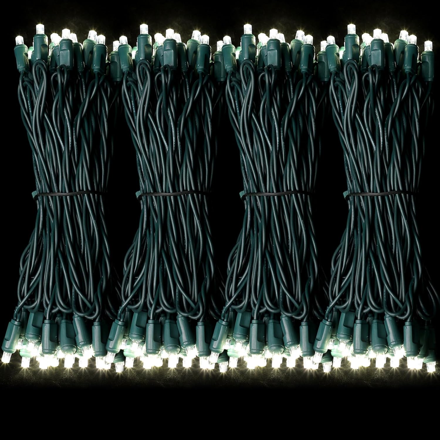 - One-Piece 5MM Commercial Decoration LIGHTS : 50ft 100 LED Lights (50 Lights 25ft X2Groups), 6-inch spacing. Green wires have a wide range of uses and are perfectly integrated with green plants or shrubs.no extra adapter is needed,bulbs are cool to touch,with the rectifier,keep the light steady (not twinkle).