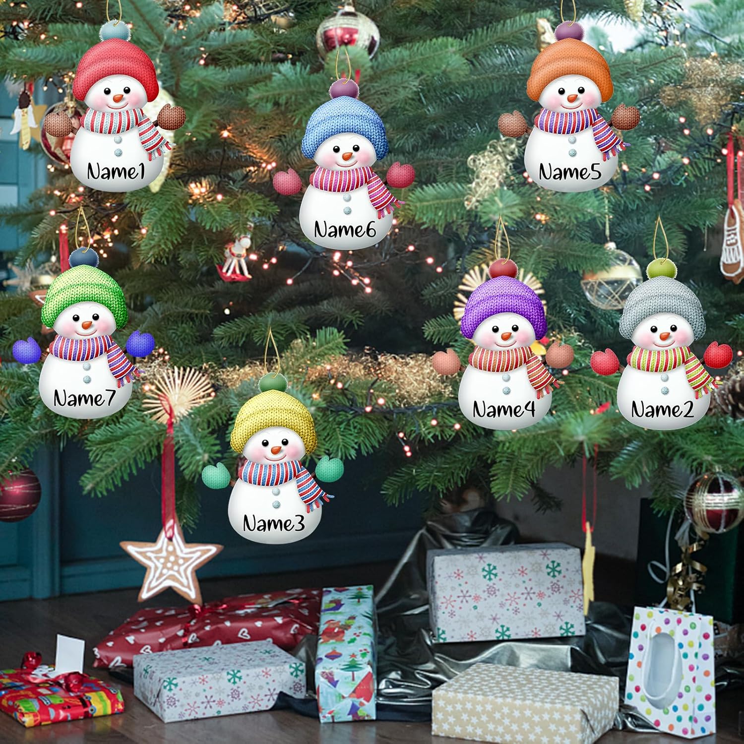Personalized Christmas Ornaments,7pcs Custom Snowman Ornaments with Name Customized Family Ornament Xmas Tree Hanging Decoration Gift - 3.15"(8cm)