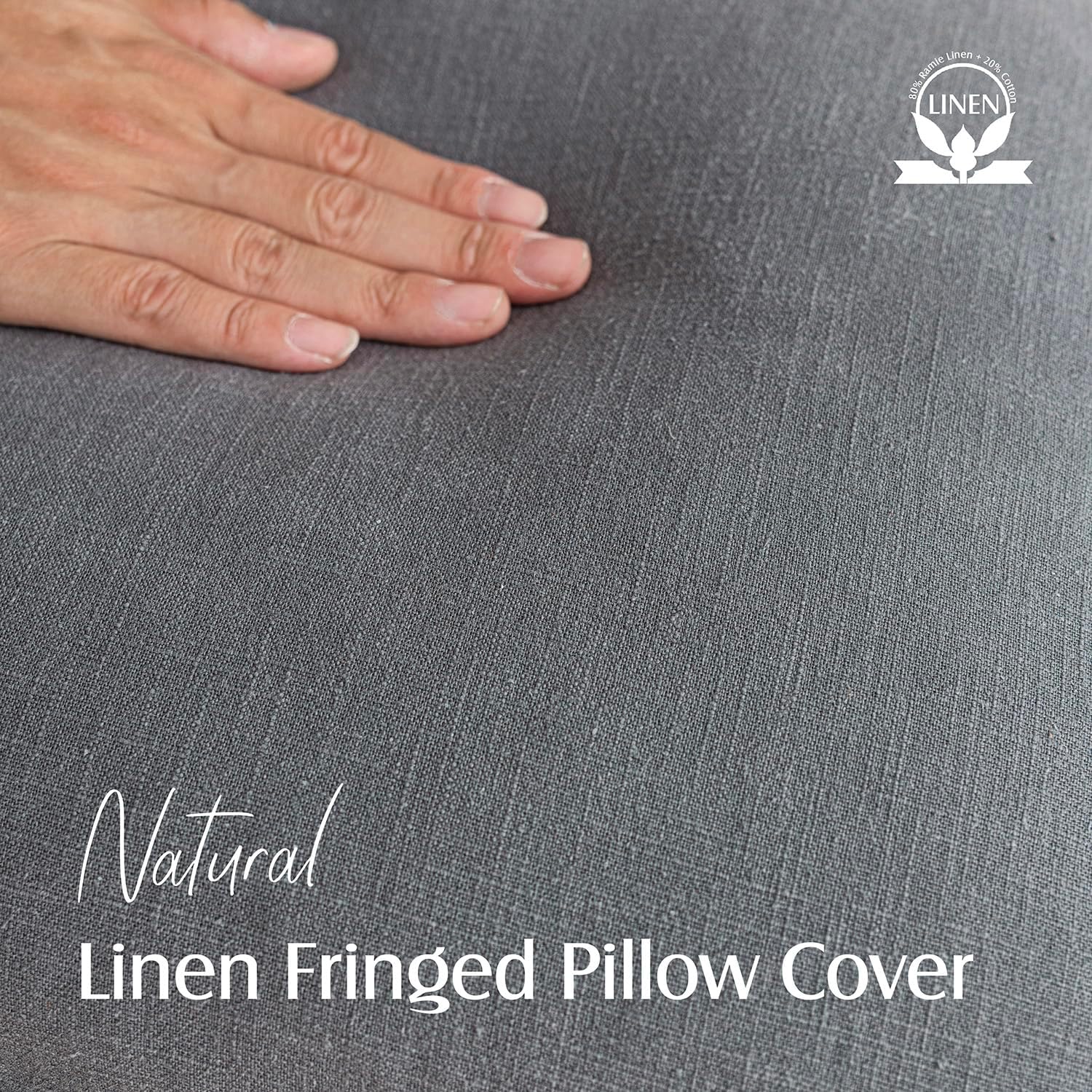 Foindtower Set of 2 Decorative Linen Fringe Throw Pillow Covers Cozy Boho Farmhouse Cushion Cover with Tassels Soft Accent Pillowcase for Couch Chair Sofa Bed Living Room Home Decor,18×18 Inch,Gray