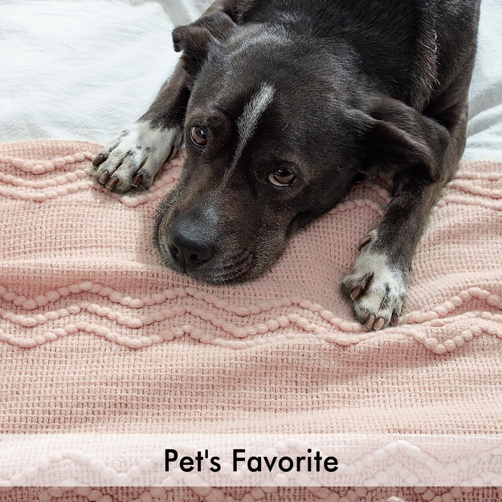 MIULEE Light Pink Knitted Throw Blanket for Couch Bed, Boho Textured Cozy Woven Decorative Farmhouse Blanket with Tassels for Sofa Chair Living Room 50"x60"