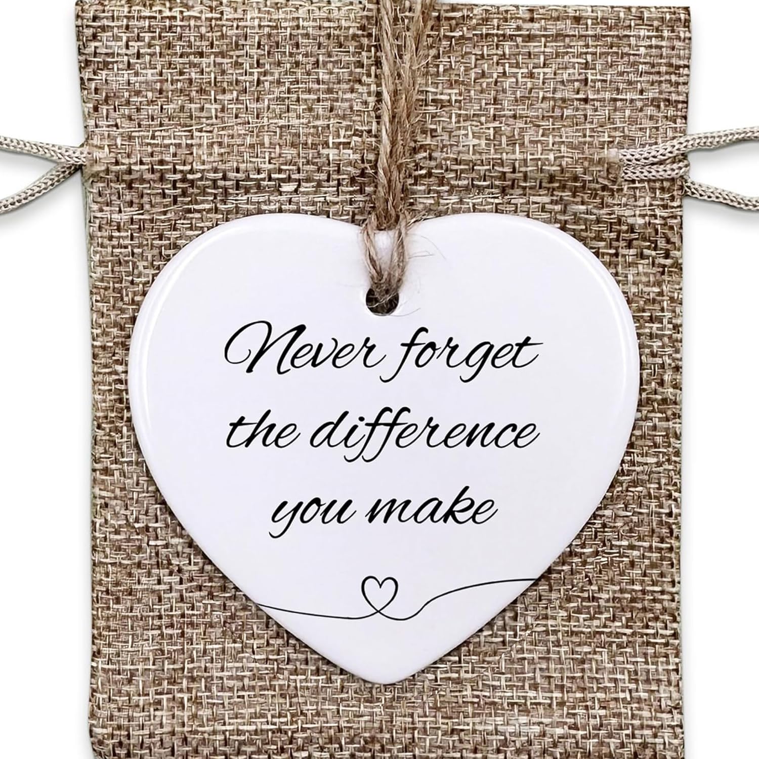 - 【Appreciation gifts for coworkers】This special ceramic ornament is a great keepsake gift with the words “Never forget the difference you make” to show your love and appreciation for any occasion.