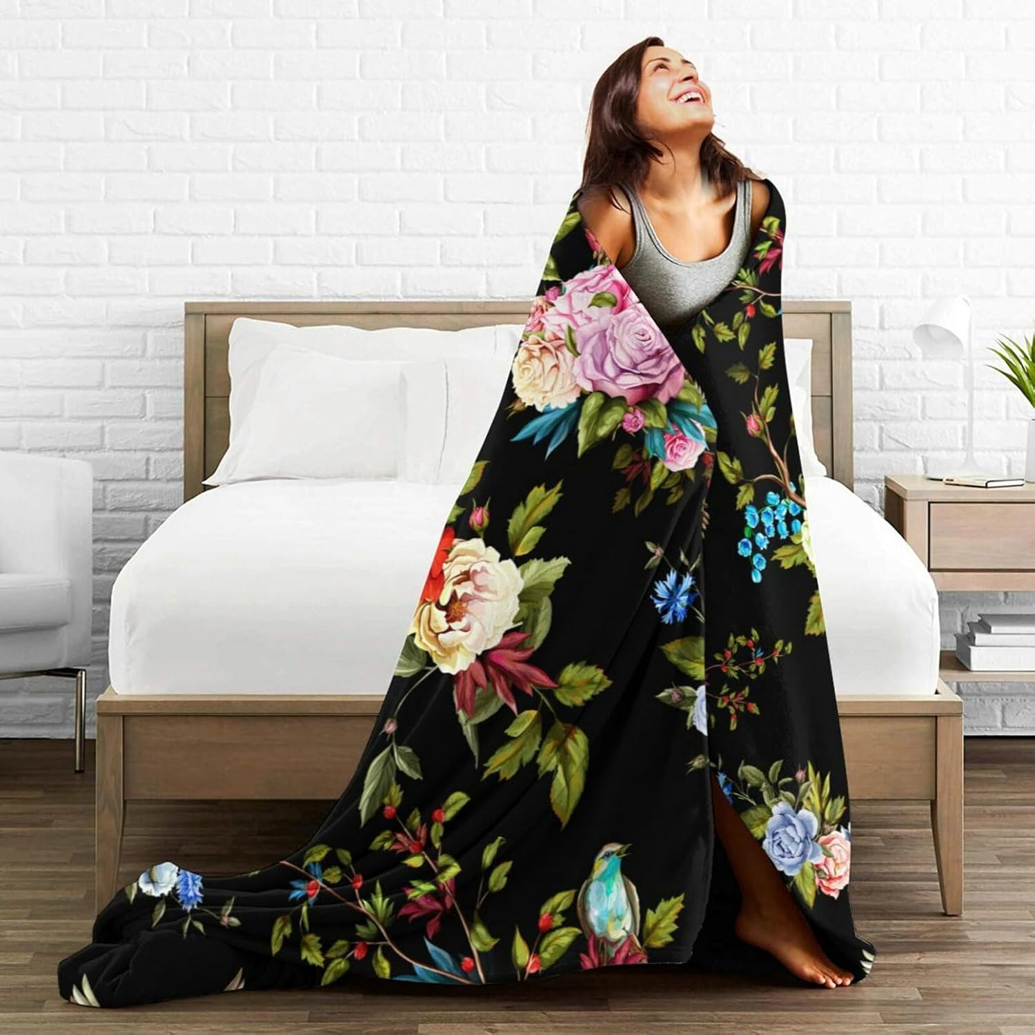 HGOD DESIGNS Wild Flowers Blanket for Women, Lightweight Soft Fleece Flannel Throw Blanket Peony Roses Sofa Couch Living Room 50x60 Inch