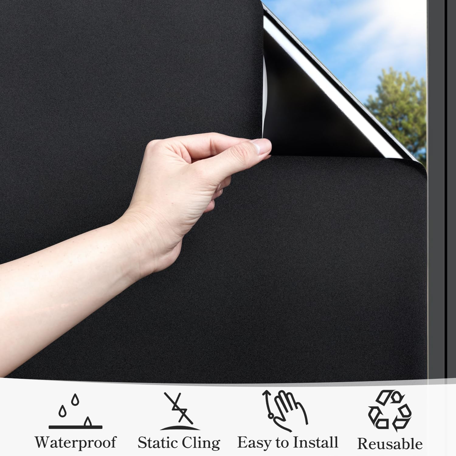 DUOFIRE Blackout Window Film Completely Light Blocking Privacy Window Film Room Darkening Frosted Tint Films for Day Sleep, Non Adhesive Static Cling Films DT-C009 (11.8x78.7Inch)