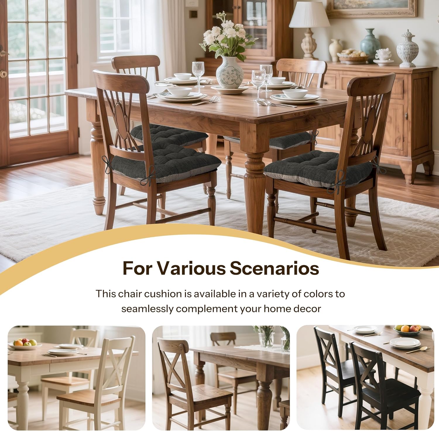 - Versatile Style: Whether you need extra support in the office or want to add a touch of style to your home, our seat cushions for dining chairs are the perfect solution. Use it in dining rooms, home offices, living rooms, bedroom, bars or even breakfast nooks to add comfort and a touch of elegance.