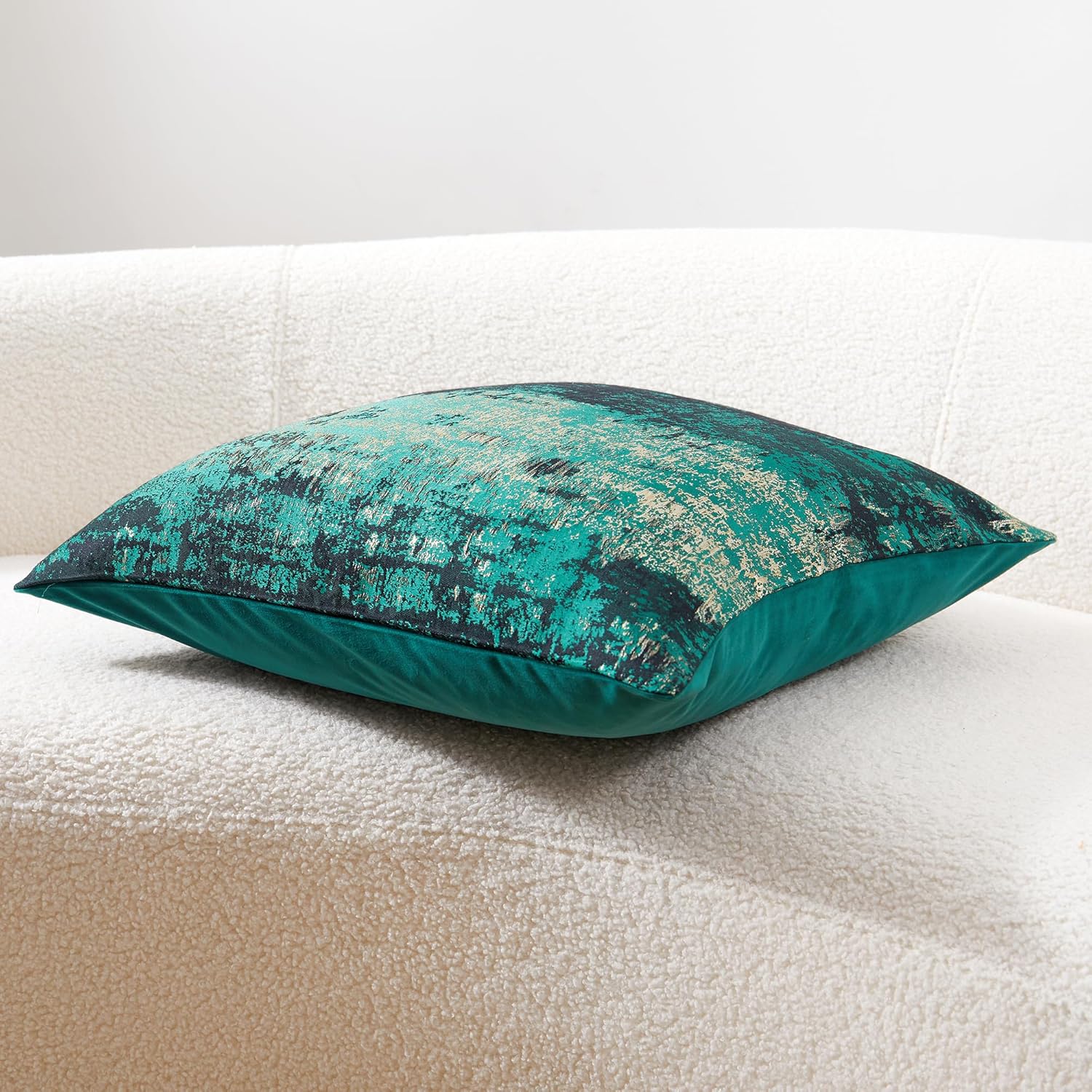 - Premium Jacquard & Velvet Pillow Cover : Crafted with luxe 70% polyester 30% viscose jacquard weave in Neon Moss Green - a vibrant, tech-inspired hue with woven gold threads that emit a sophisticated metallic radiance. The reverse features 100% polyester cream beige velvet in sumptuous cloud-soft texture. Two looks in one—Instantly transforms sofas, beds, or accent chairs from daytime chic to evening glam.