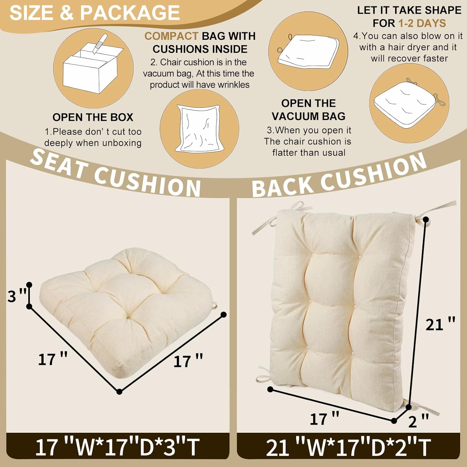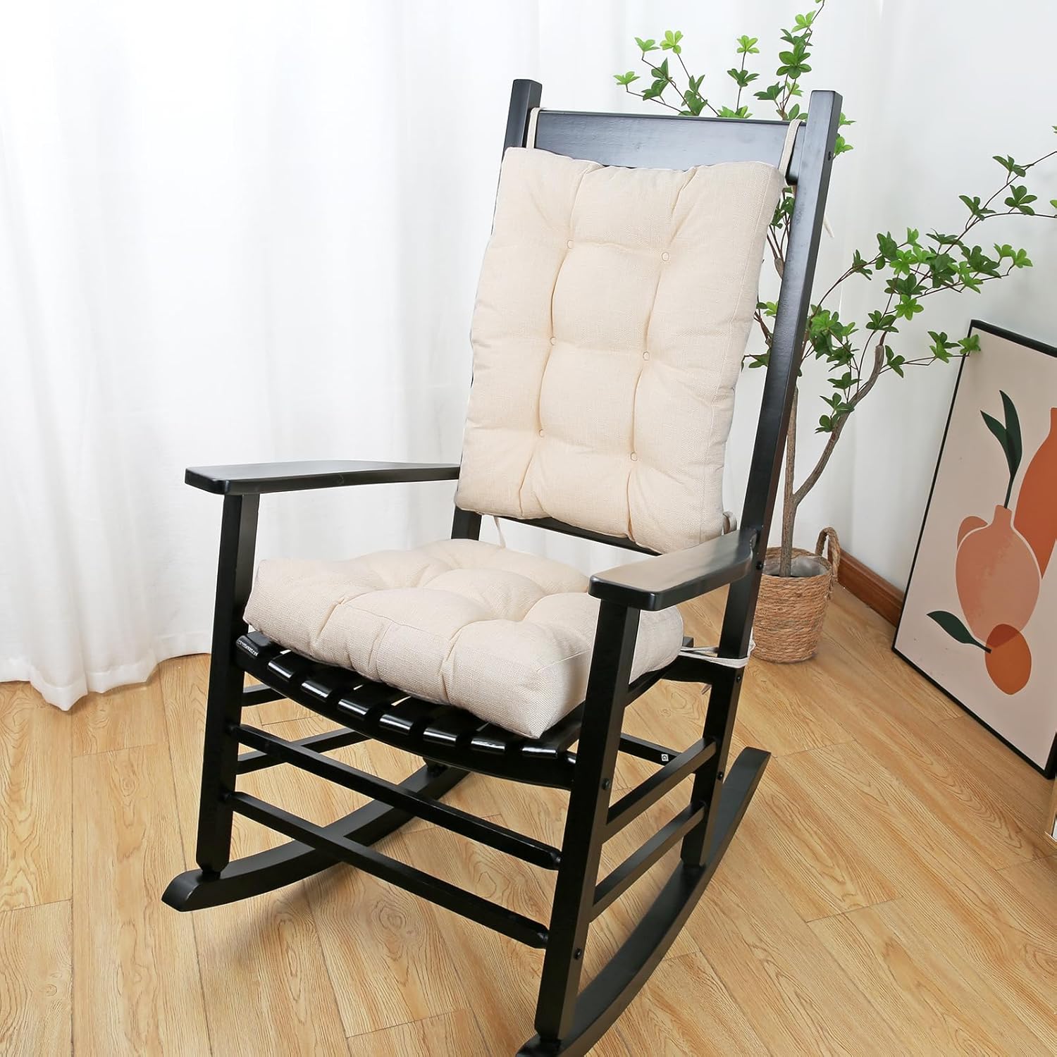 - ✦Size✦: Seat cushion is 17" x 17" x 3"; Back cushion is 21.6" x 17" x 2". Perfectly fit for the indoor rocking chair. The ties will keep the cushions stay in place.