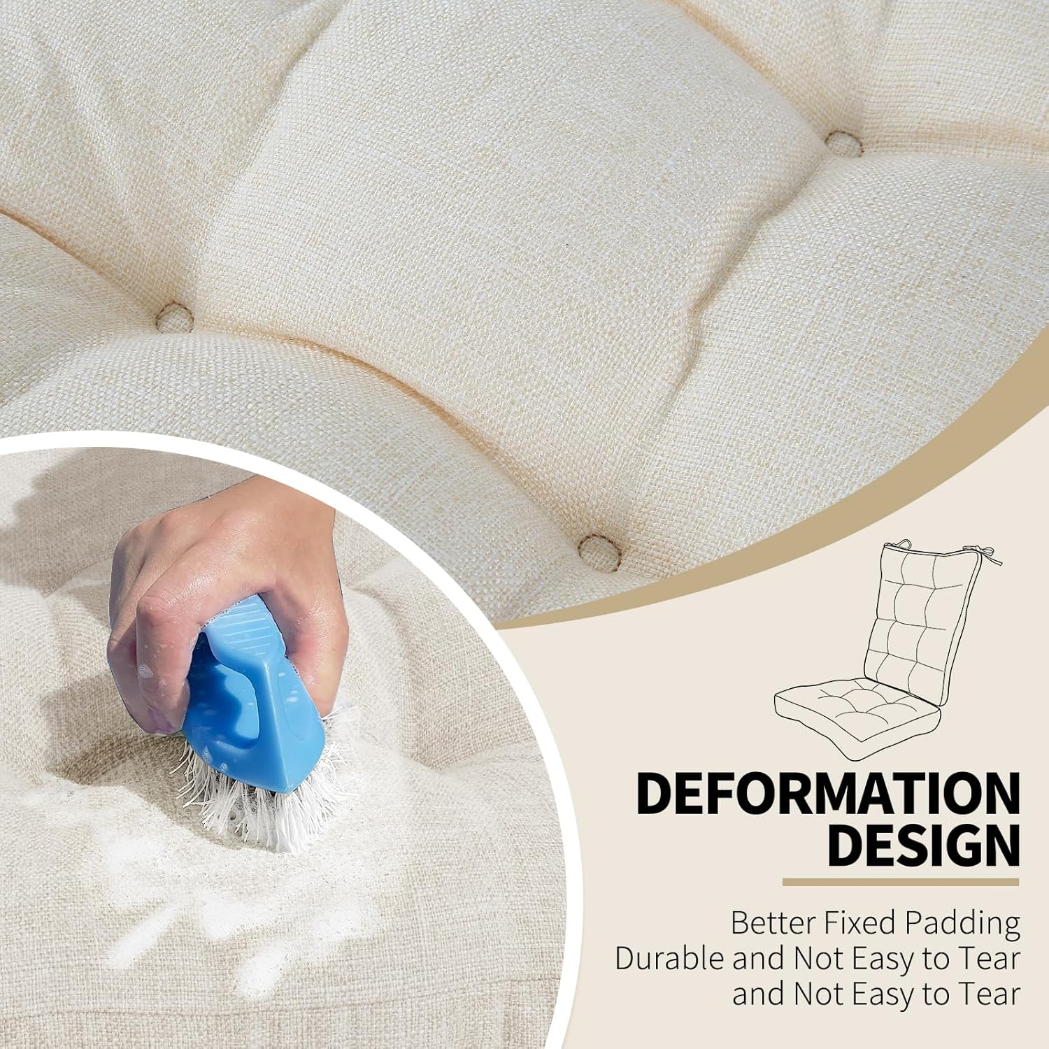 BUYUE Chair Cushion Set for Rocking Chair, Back Pillow & Seat Cushion with Ties, Original Woven Fabric Non-Slip Chair Pads for Elderly Sitting, Beige