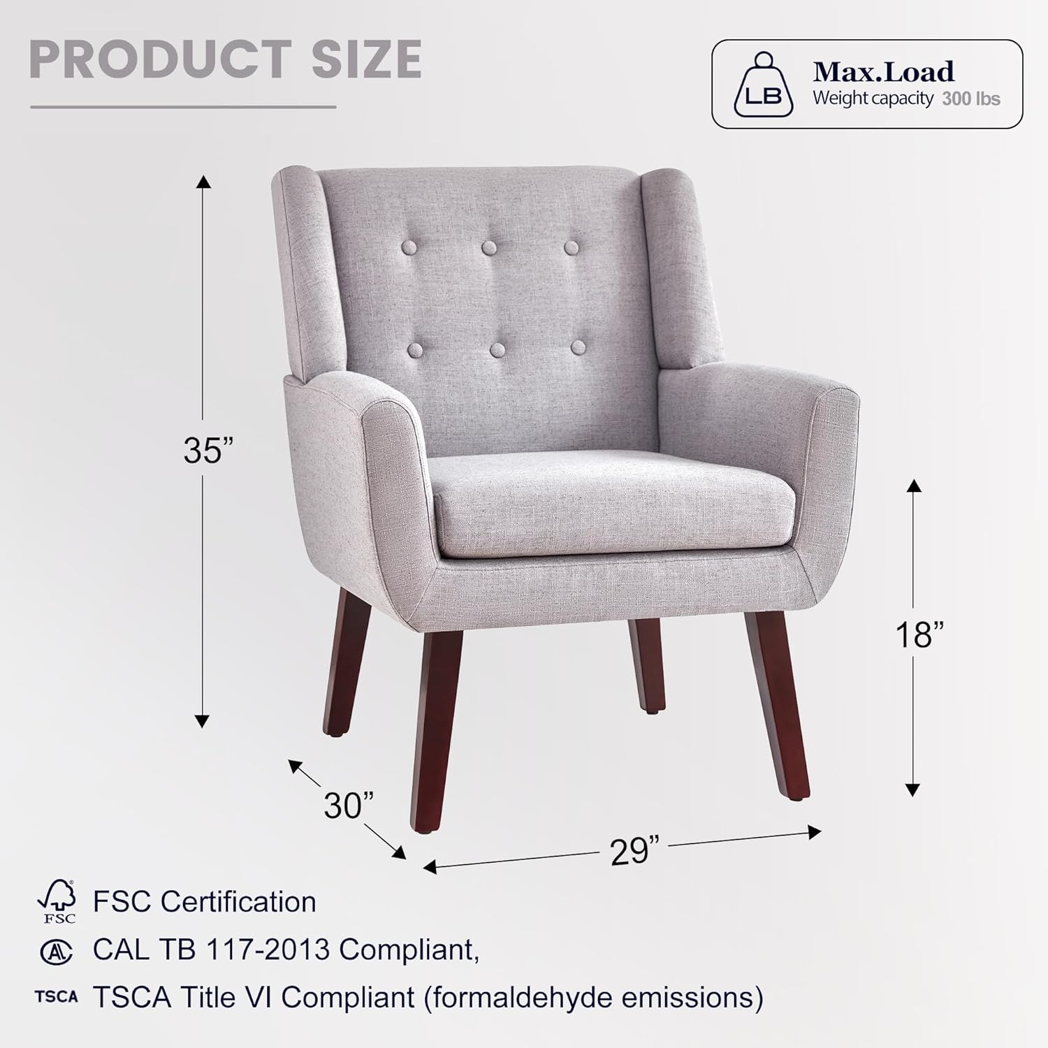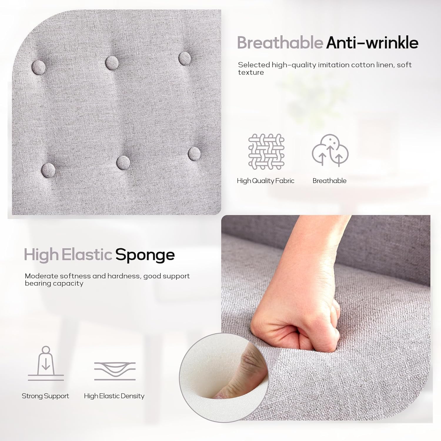 - Modern Style Design: The living room chair is designed with a simple and classic appearance to match any interior decoration style of your home. The tufted buttons of the living room chair back cushion are natural and the fabric is soft to the touch. Also available in six colors, adding a classic flair to your room is the versatile decorative chair you use