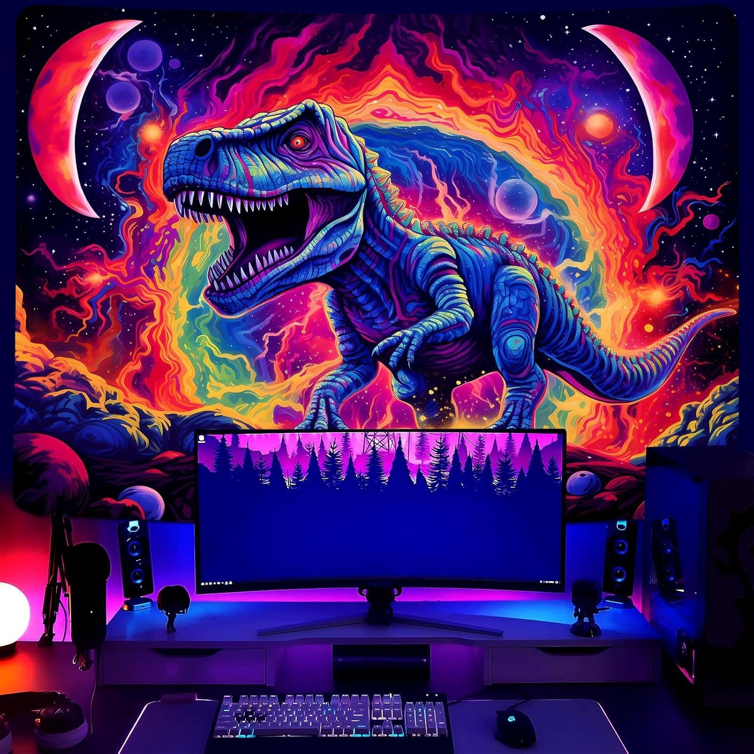 Dinosaur Tapestry Blacklight, Black Light Dinosaur Posters for Boys Room Uv Cool Dino Kids Tapestry for Teen Bedroom Home Decor 60x50in