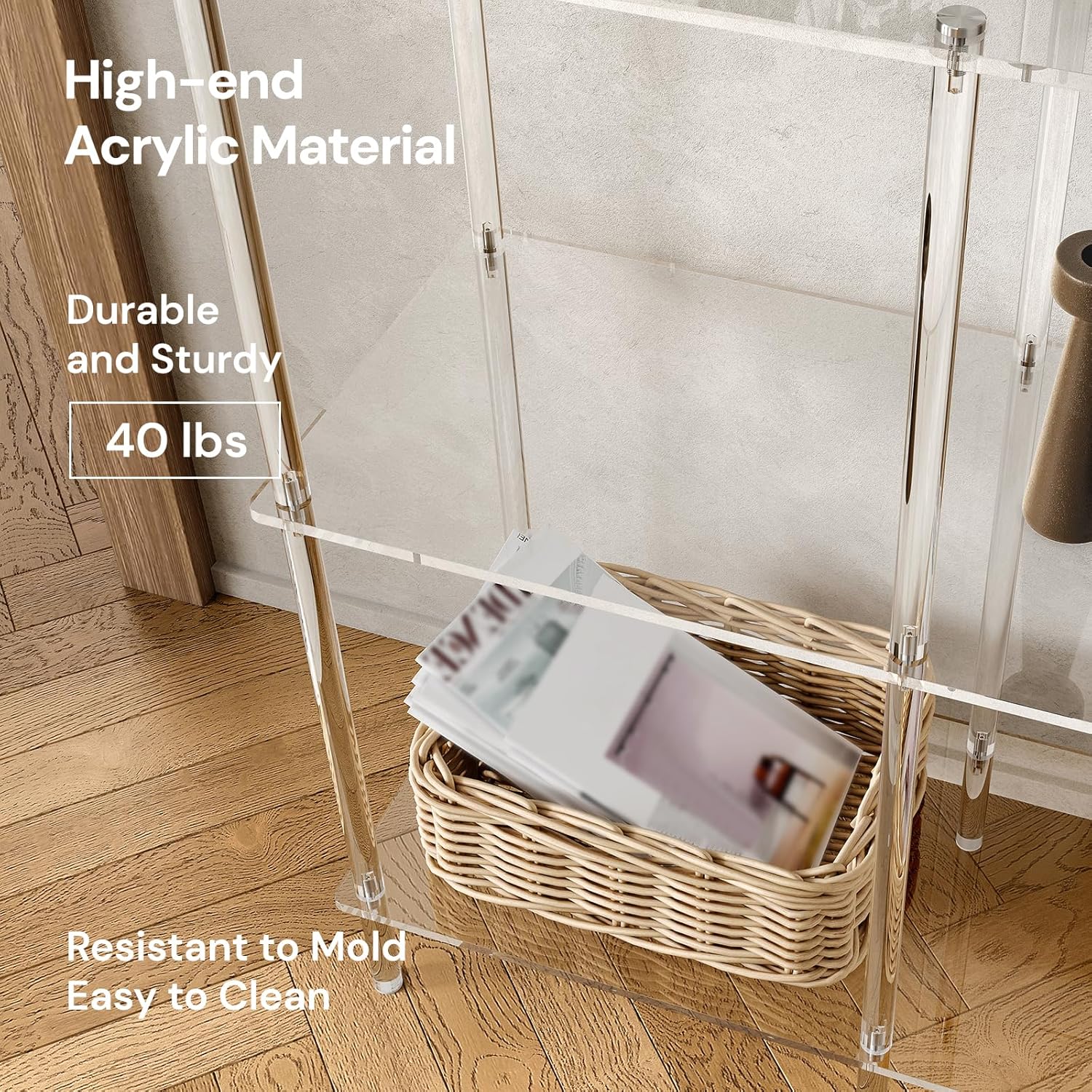 - Versatile Utility: Place this acrylic console table in your entryway, hallway, foyer, behind a sofa, or even in your living room to lend an exquisite touch to any corner. Its adaptability makes it an indispensable addition to various areas of your home.