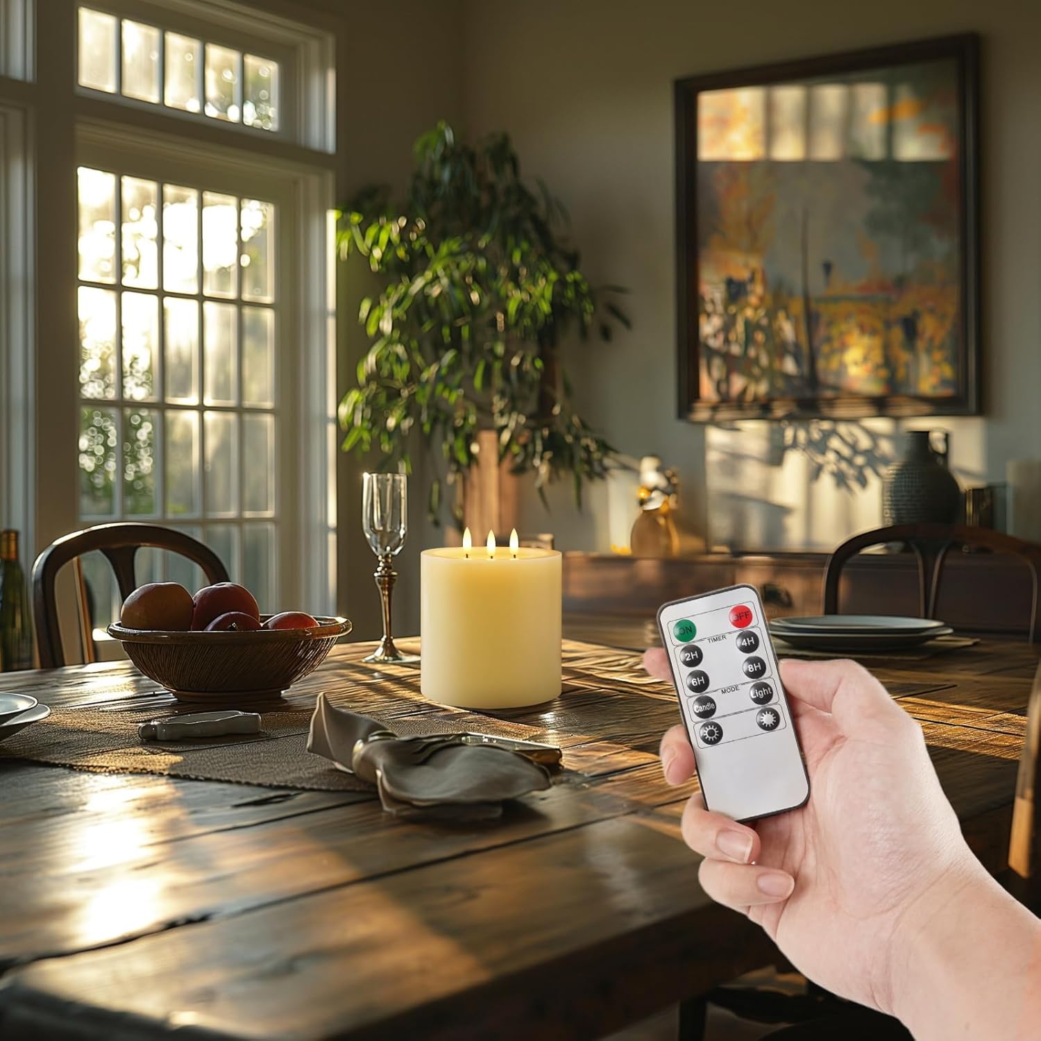 - Package Include: 6"x6" extra large flameless candles with 3 wicks, 1 x remote control, 1 x user manual. Each battery candle is powered by 3 AA batteries. (Not included)