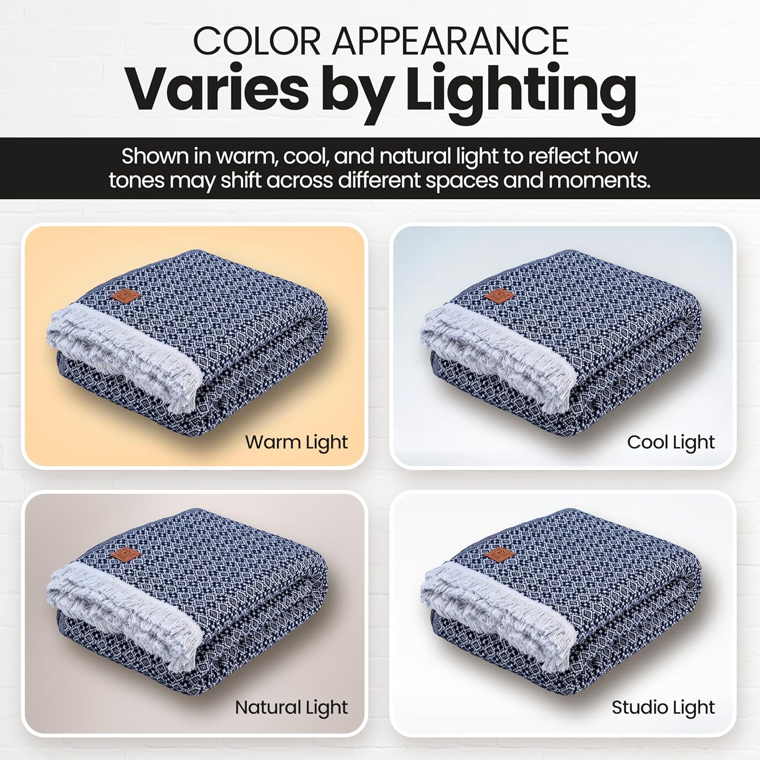 - CELEBRATE SUSTAINABLE STYLE: Made in Turkiye with recycled cotton, this cotton throw blanket brings eco-conscious comfort to your home; the soft weave and fringe detail give this woven blanket for bed a rustic, decorative touch that layers beautifully in any space
