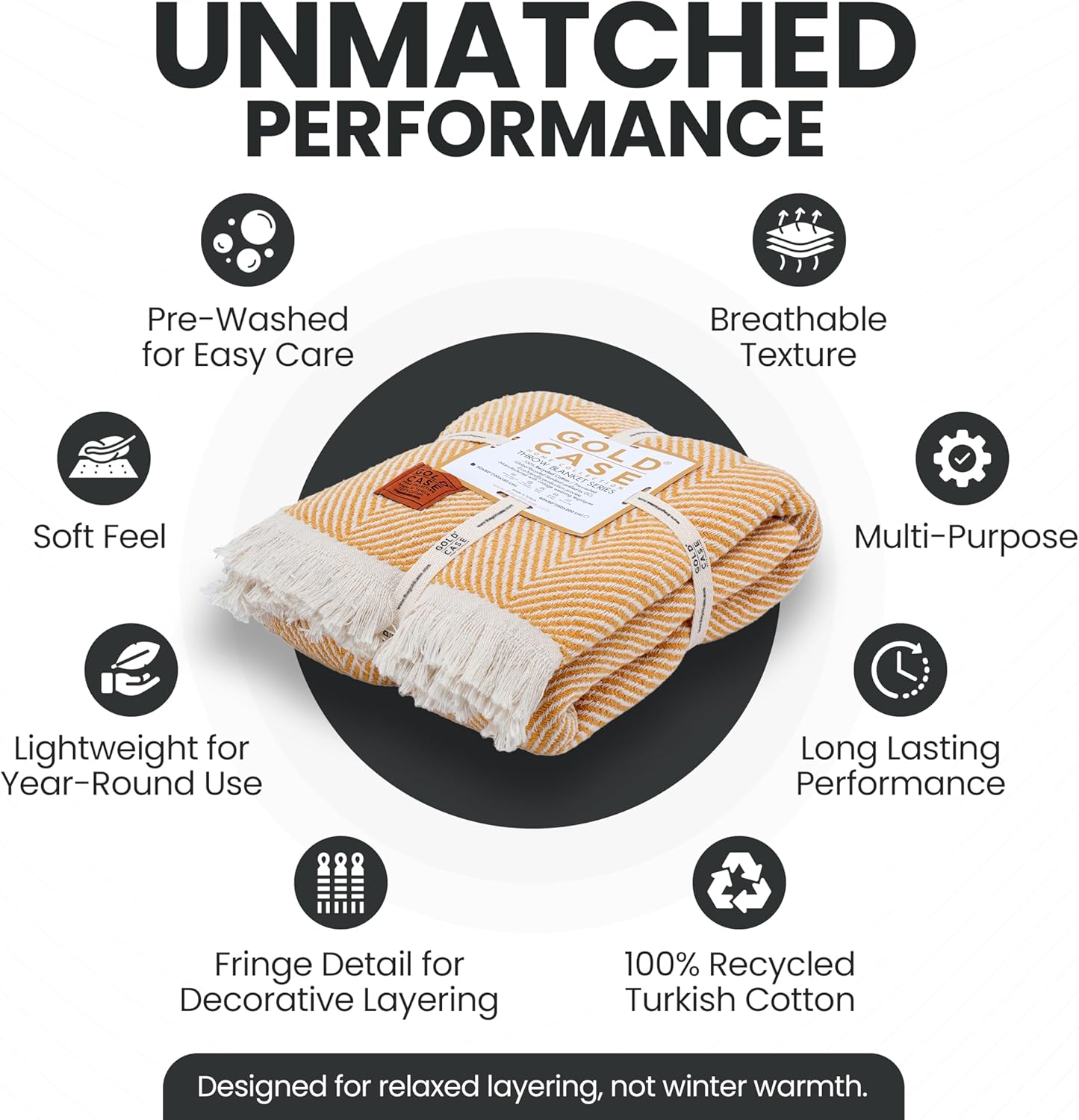 Gold Case Throw Blanket for Couch – 100% Recycled Turkish Cotton Blankets & Throws – Elegant Decorative Throw Blankets for Living Room Sofa – Woven Throws for Couch – Elegant Mustard – 60x80