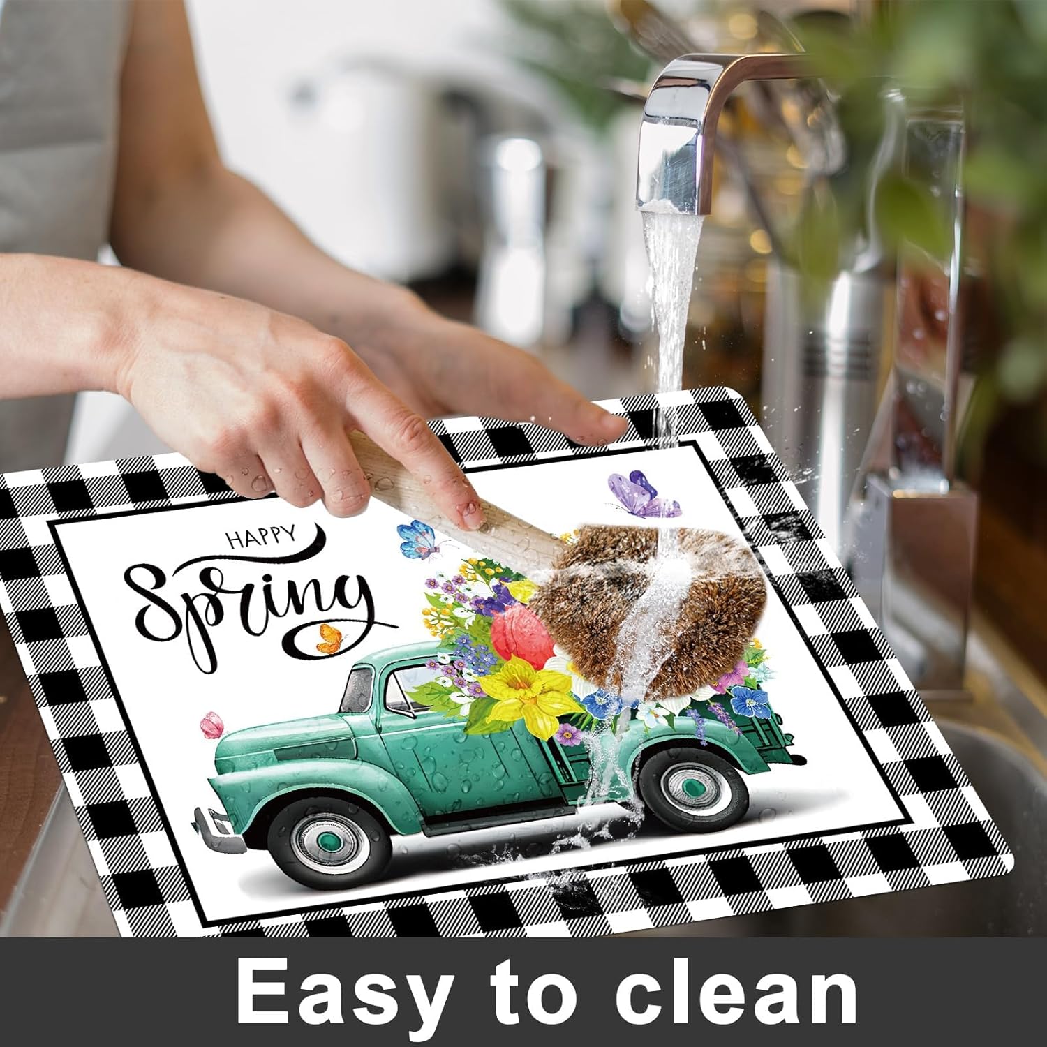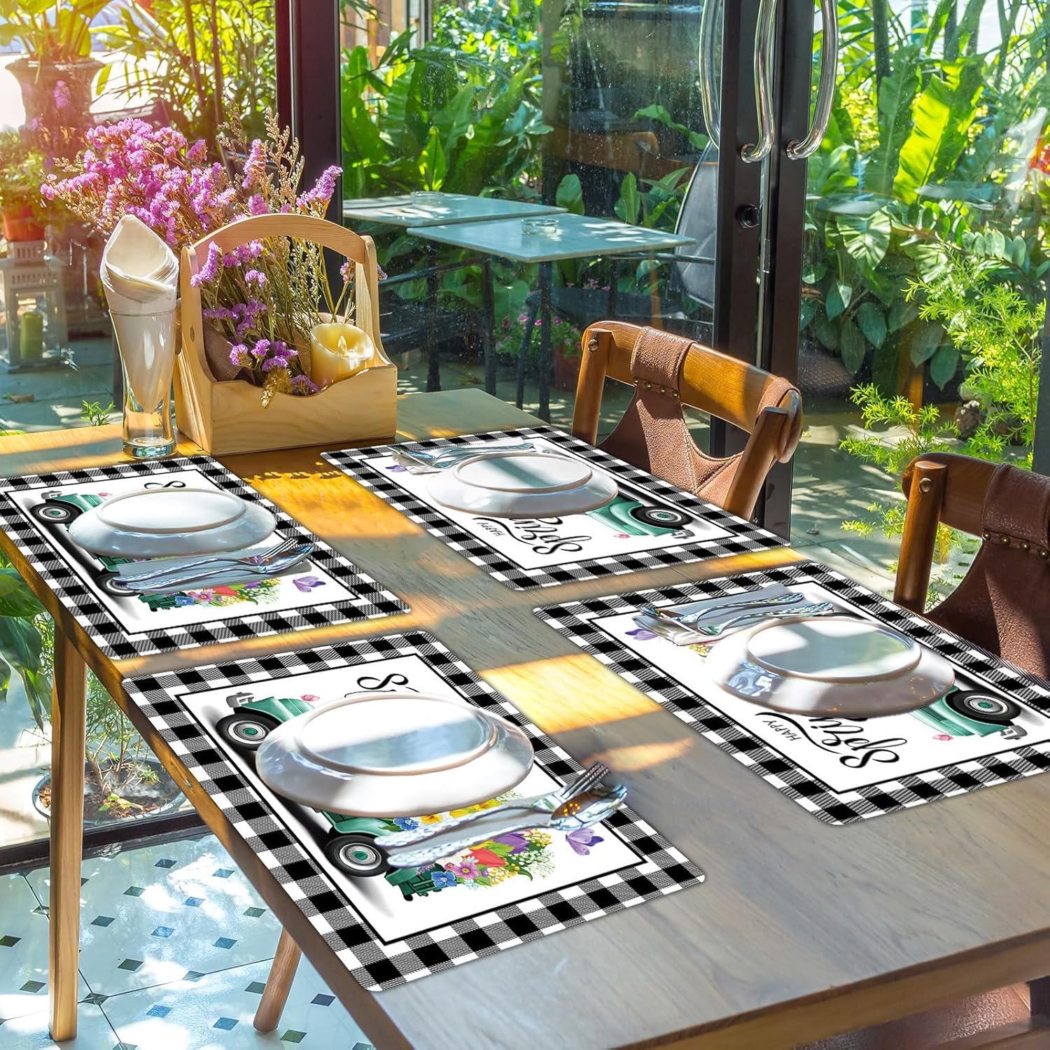 - Easy to clean:Our truck flowers table mats are designed for easy cleaning to save your time. Just wipe these spring plastic placemats with a damp cloth after the party.