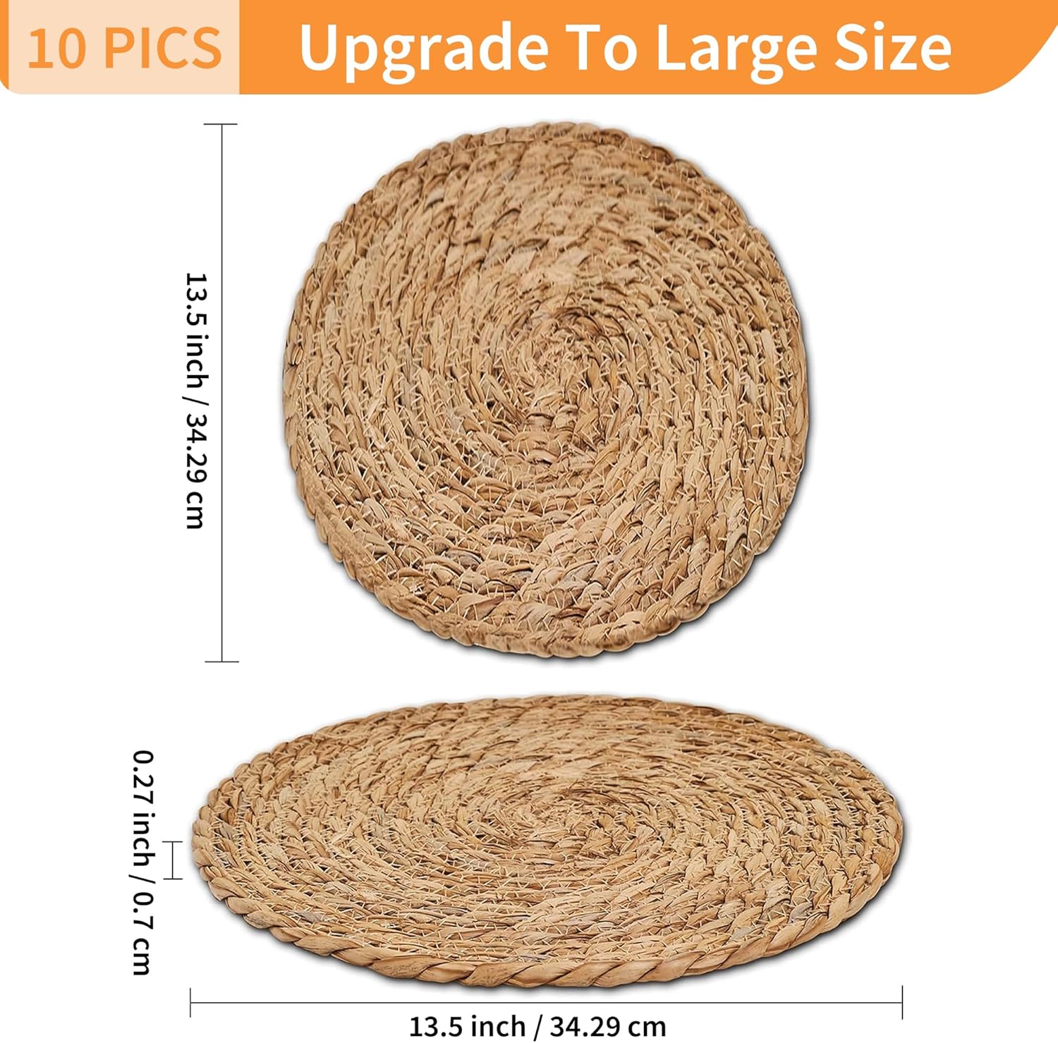 - 【Protection &Heat Resistant】:Defined Deco large woven placemats are 13.5 inch in diameter, Made of 100% natural water hyacinth, friendly to kids, the elderly or pregnant women, compact and rigorous weaving provide durable quality and soft touch.Our braided circle placemats are hand-woven and more heat resistance than other straw mats, cloth mats and rubber pads.