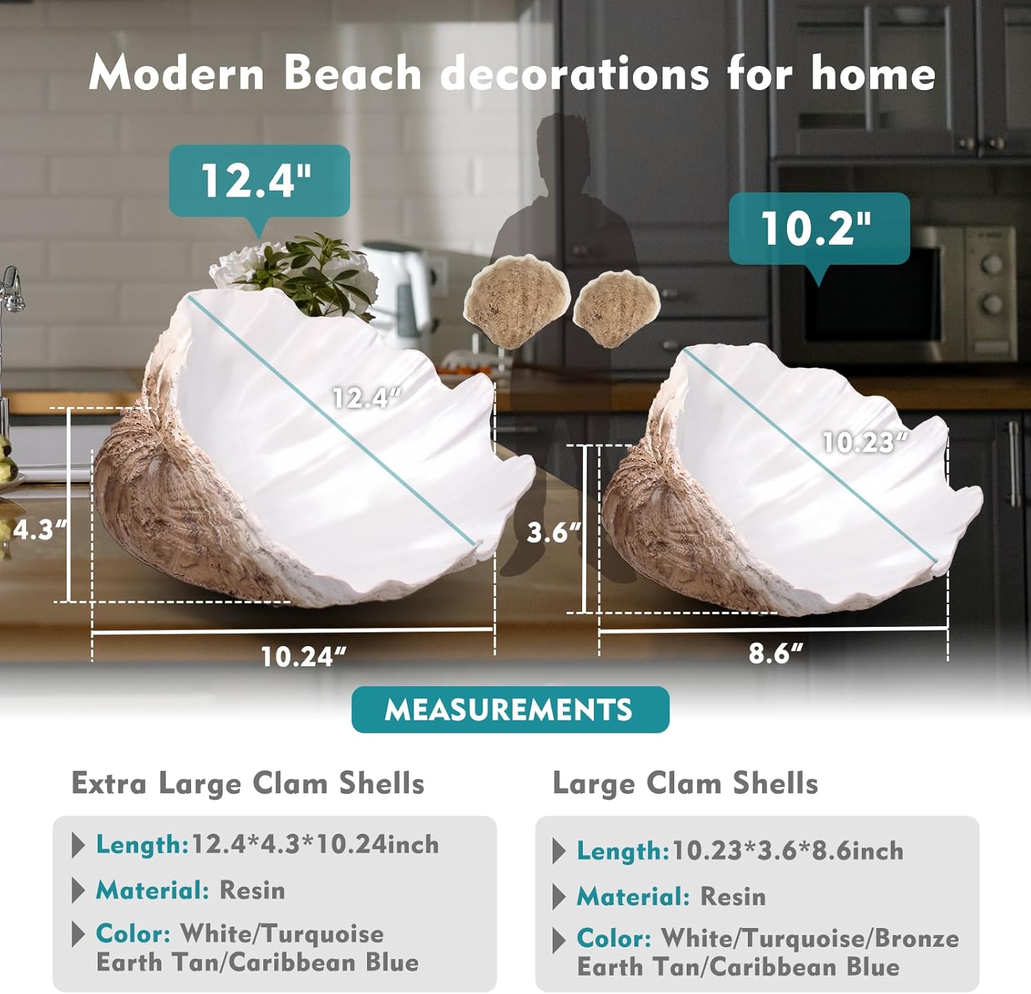 - 【Modern Beach decorations for home】Extra large clam shell bowl is a beautiful translation of a shell from the thrashing Pacific into a large decorative bowls sculpture for home decor.This sea inspired sea shells will add nautical elegance to your home, without exploiting any bit from our oceans