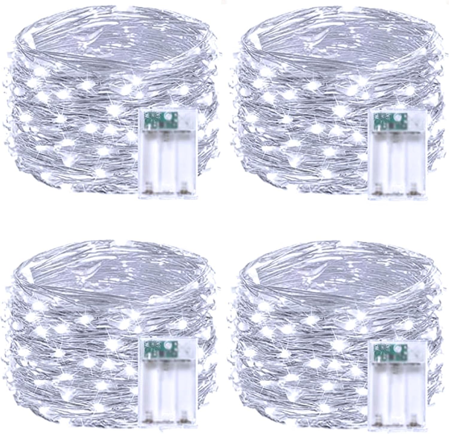 - Ultra-Bright and Durable Battery-Operated Fairy Lights: Each string includes 60 super-bright LEDs, 20 feet of sturdy silver color copper wire, and a battery case with a timer, ensuring longevity and reliability. These cool white lights offer a bright, modern glow, perfect for creating an elegant ambiance. Ideal for indoor and outdoor decor, such as curtain, garland, Christmas tree, bedroom, centerpieces, fireplace, porch, patio, garden, party, and all kinds of holiday decorations.