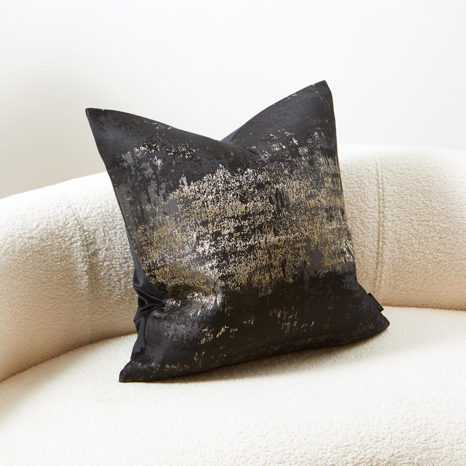 THE-TINOART Black & Gold Modern Luxury Pillow Cover 18x18 - Jacquard Embroidery with Metallic Thread, Reversible Decorative Throw Pillow Cover for Sofa/Bed, Velvet Backing