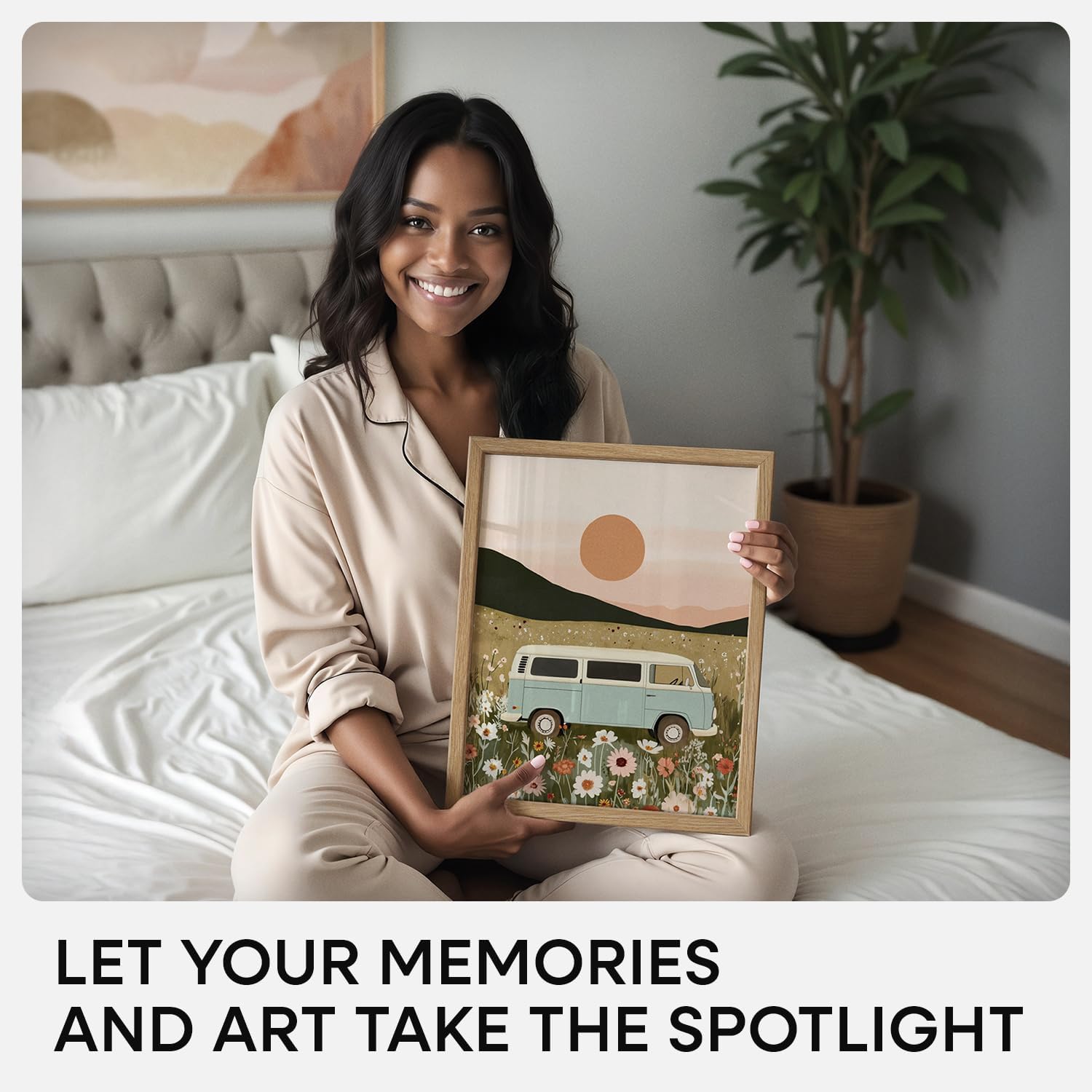 - LUXURY TEXTURE, NEVER LAMINATE Crafted from real oak with subtle grain and a matte finish, this frame delivers an upscale gallery look—not a mass-produced feel.