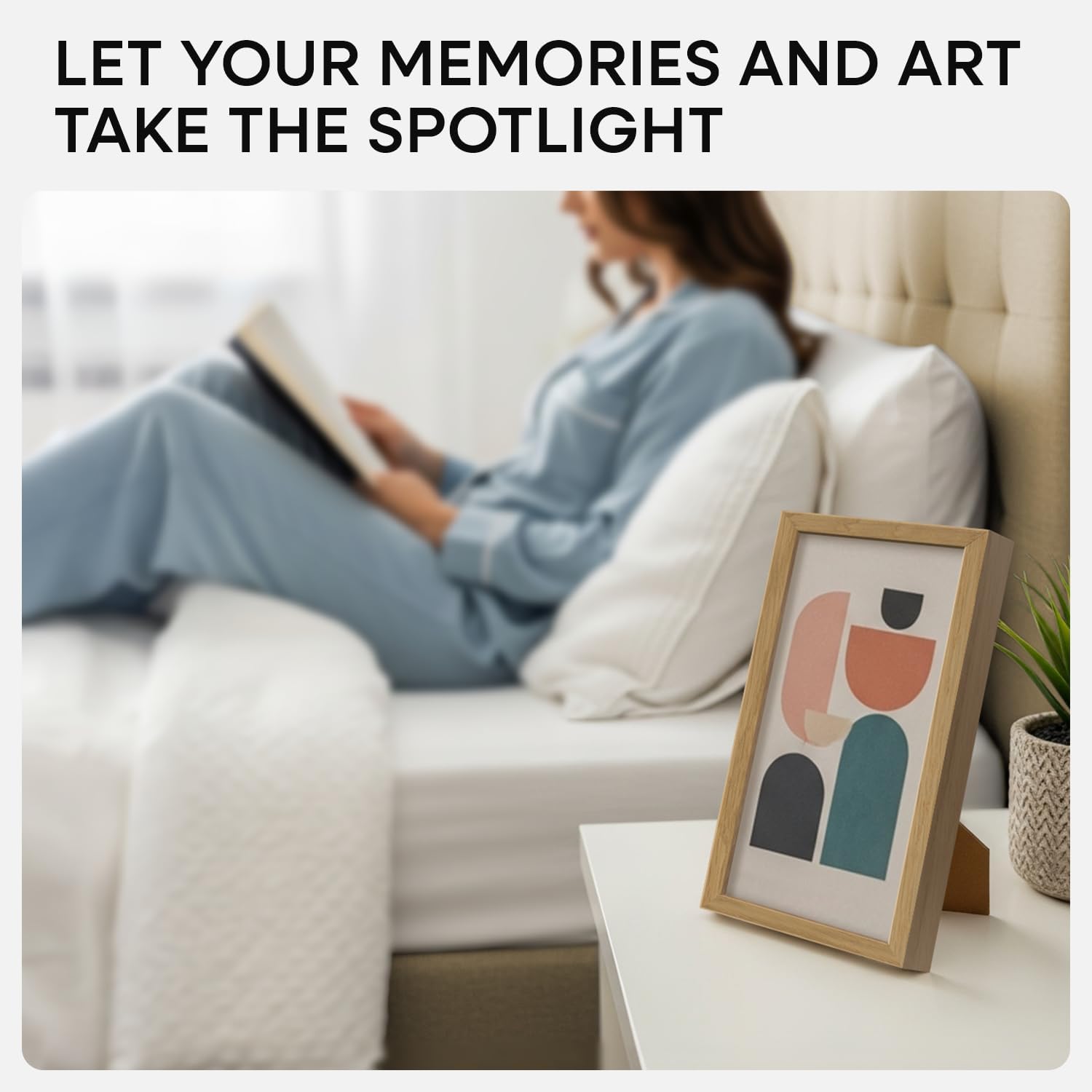 - LUXURY TEXTURE, NEVER LAMINATE Crafted from real oak with subtle grain and a matte finish, this frame delivers an upscale gallery look—not a mass-produced feel.