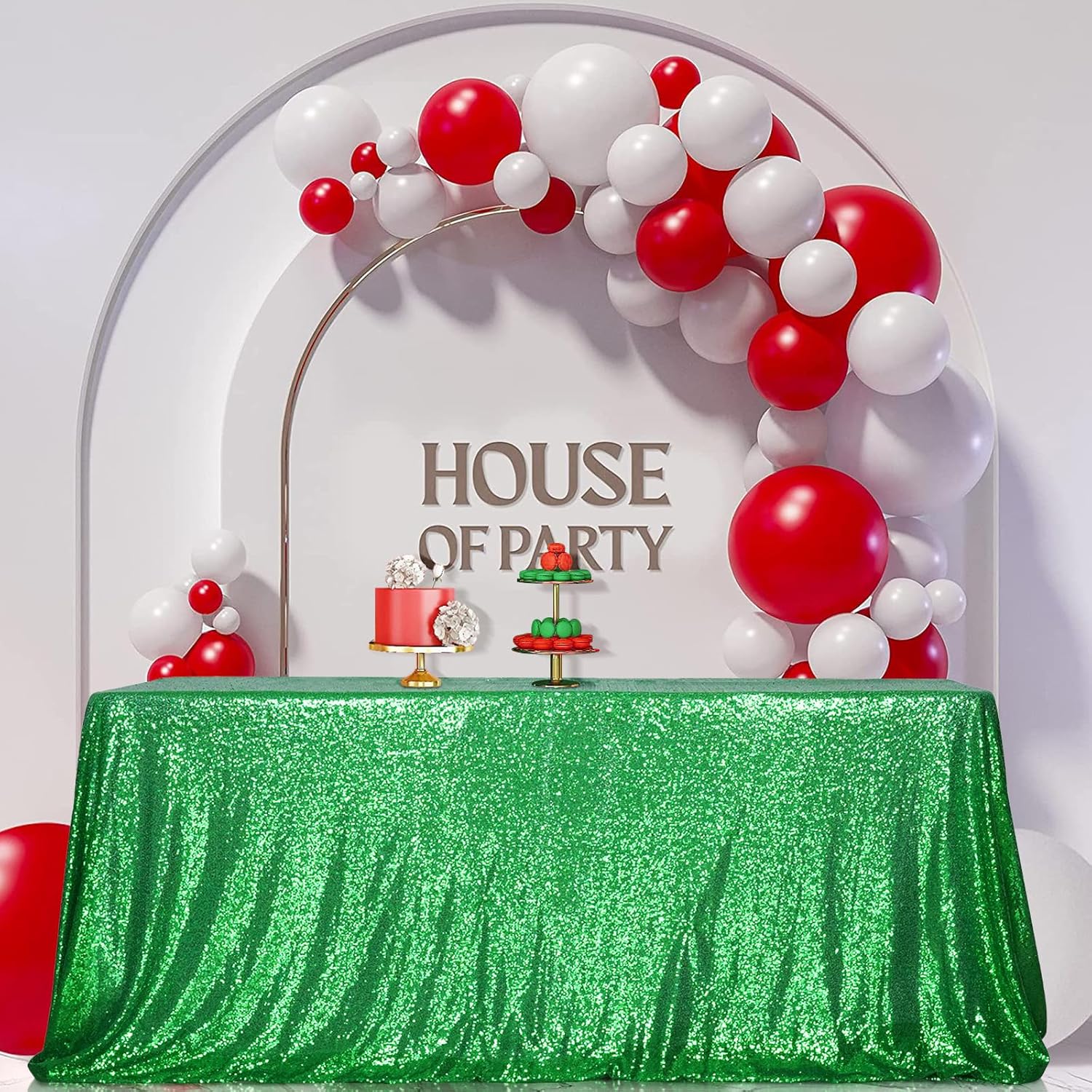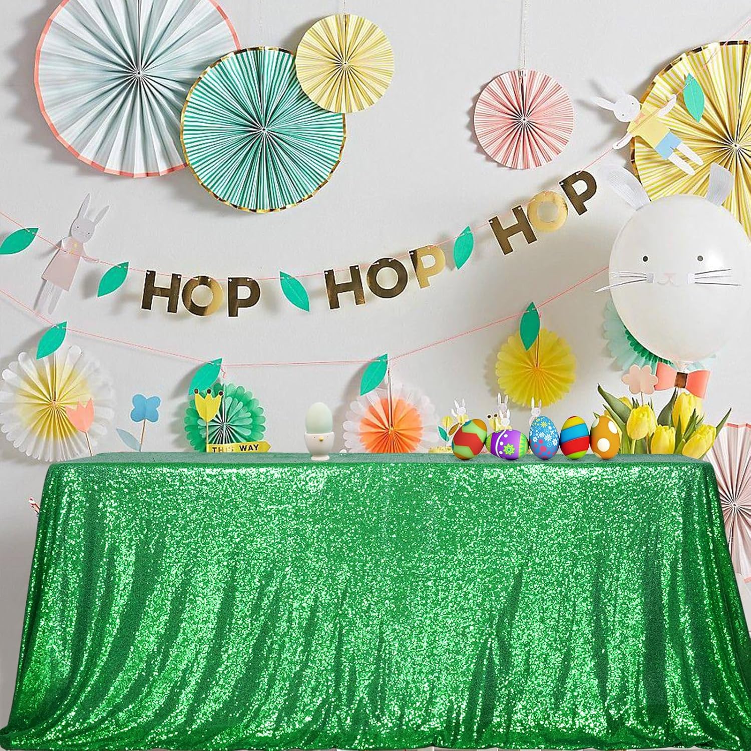 SquarePie Sequin Tablecloth 90 x 132 Inch Green Sparkly Table Cloth for Wedding Party Decoration