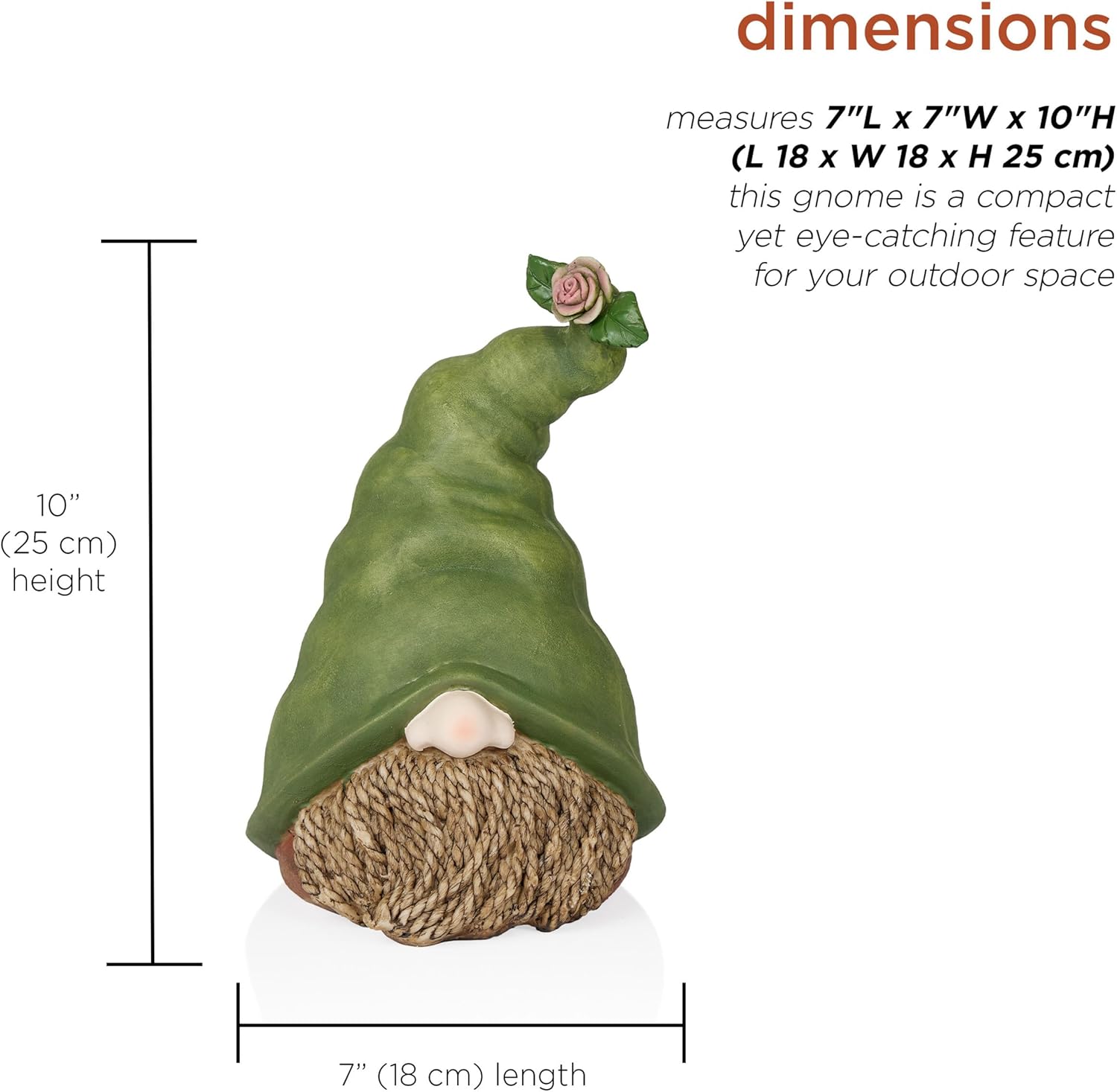 - PLAYFUL DESIGN: This cute gnome features a vibrant flower on his green hat, enhancing the natural beauty of your outdoor space. The sculpted rope beard adds an extra layer of detail, making it a unique and fun garden accent.