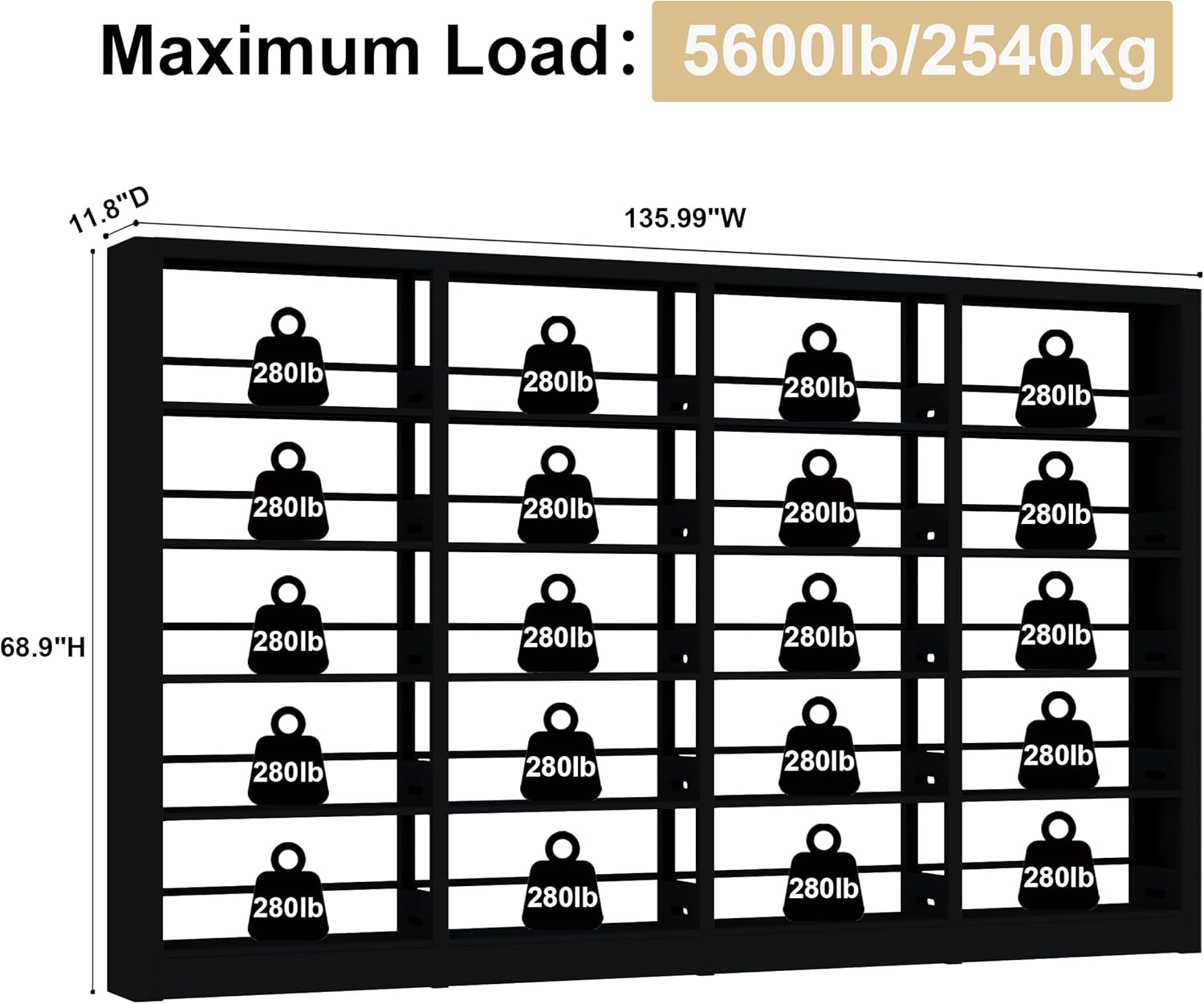 - 【Adjustable Bookends】There are bookends on the back to stop the books from falling. Size: H68.9*W135.9*D11.8 inch.Taller bookshelves and wider bookshelves