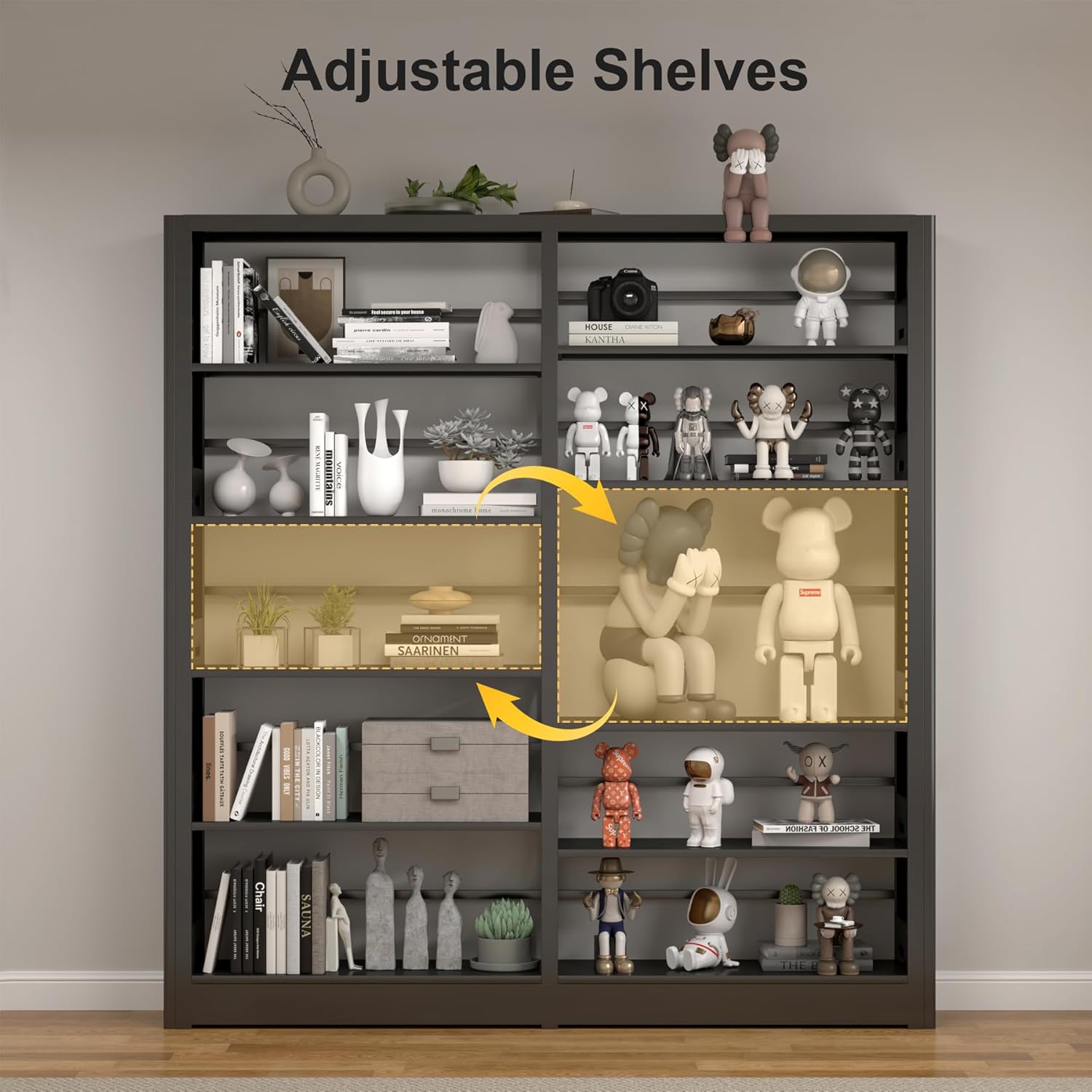 - 【Adjustable Shelves】The height of the shelf is adjusted according to your needs and can hold both normal size and large size books. You can also use it as a shelf for tools, toys, and display shelves.