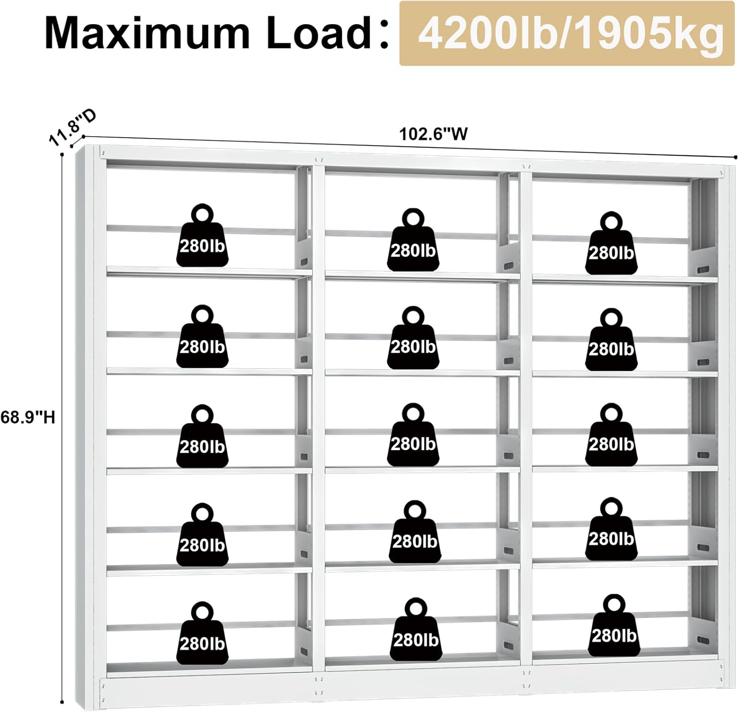 - 【Large Load-bearing Steel Bookshelf】Metal bookshelf Features:Heavy load bearing,Stable,Sturdy,Non-pollution,Long service life.Move multiple installation is not easy to damage.Our bookshelf is made of cold rolled steel and can hold up to 280 pounds per shelf. The ironck bookshelves are better load-bearing than wooden bookshelves and stronger than wooden bookshelves.