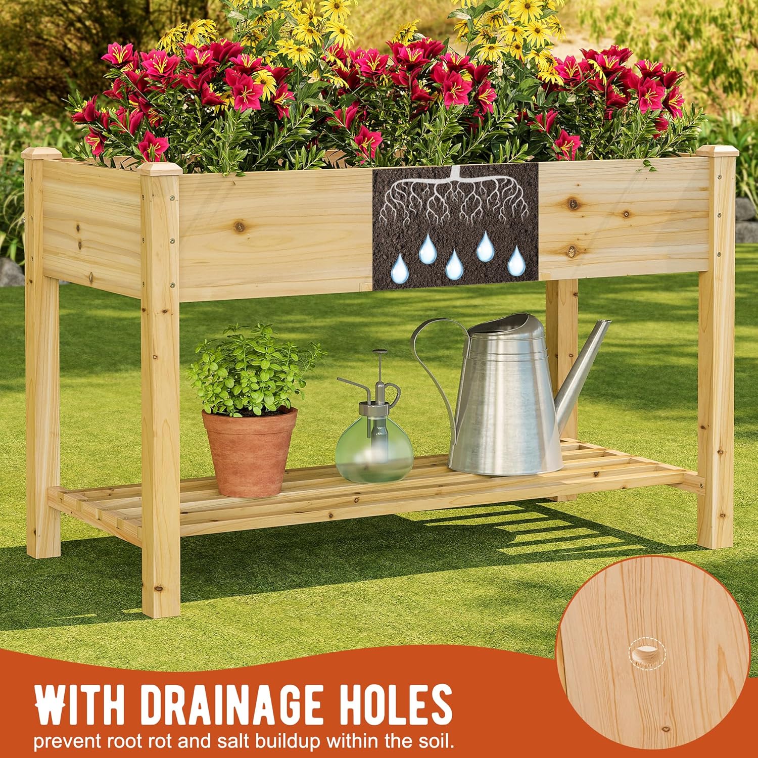 GHWIE Raised Garden Bed with Shelf,Elevated Wooden Planter Box with Legs,Garden Planter for Backyard, Patio, Balcony,200lb Capacity - Natural