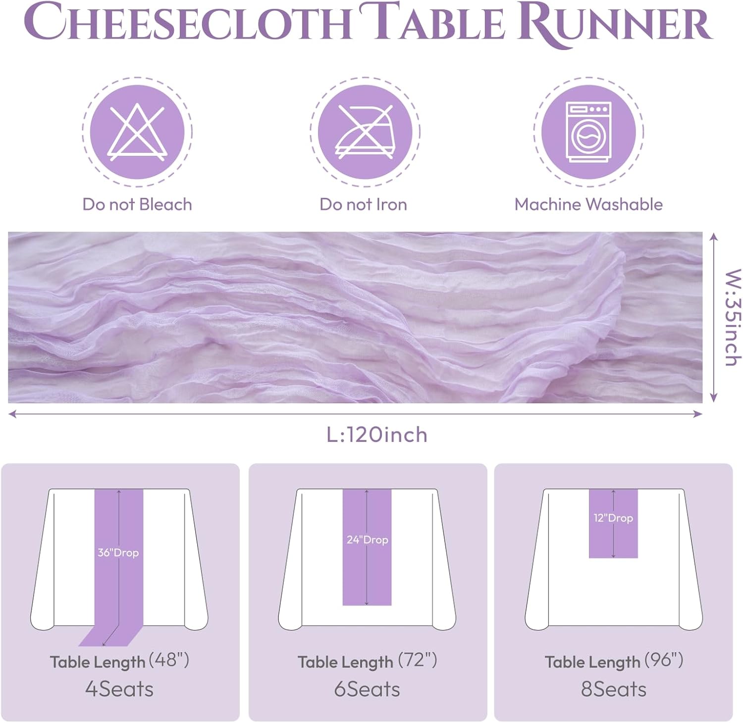 Sioloc 5 Pack Lilac Purple Lavender Cheesecloth Table Runner Fall Autumn Decor for Home 10ft Table Cloth for Tea Wedding Birthday Party Baby Bridal Shower Halloween Thanksgiving