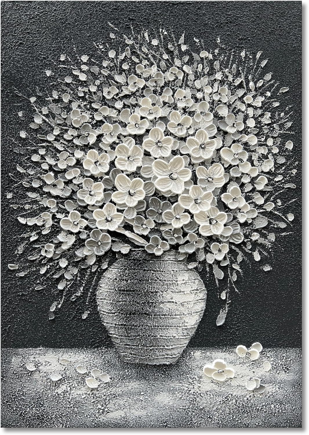Epicler art Hand-painted abstract white flower art oil painting, 40x28 inch canvas wall art painting office home wall decorative art