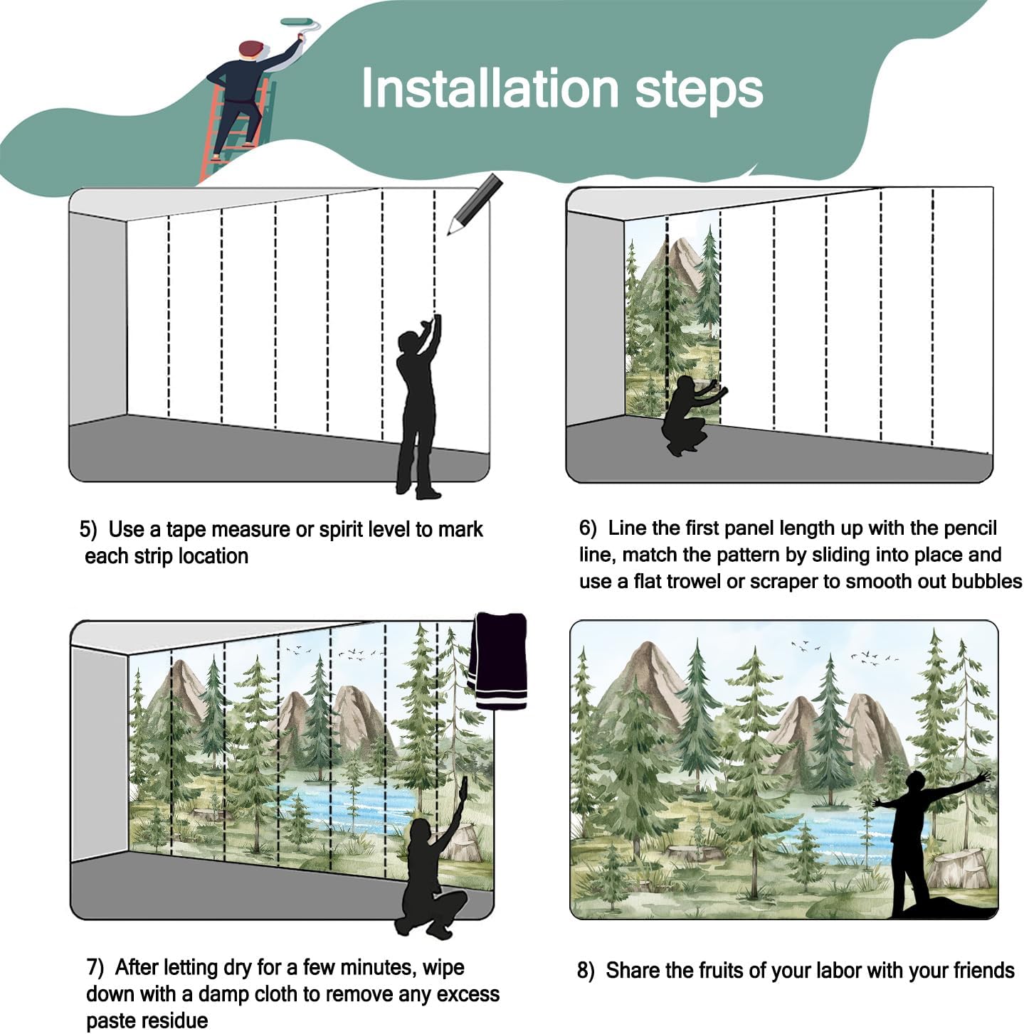- Mural wallpaper size: 140 "W x 91 "H, divided into 7 sections, each section is labeled with a number underneath, there is no need to overlap the pattern when installing, just install according to the number labeled underneath the panel