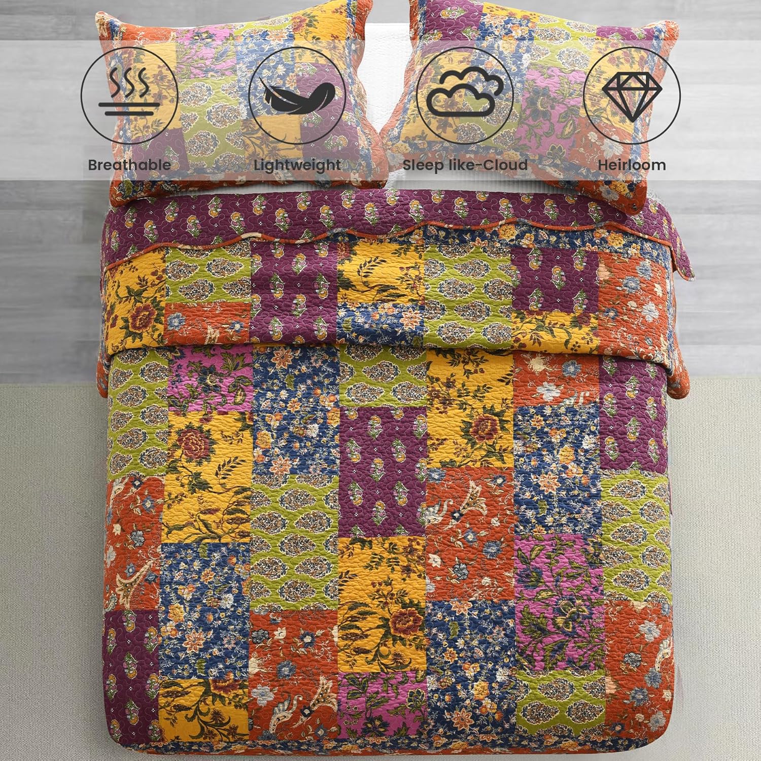 - Elegance in Home Decor: This bedding set includes a king-size quilt (96x108 inches) and two matching pillow shams (20x36 inches), all crafted with precision. The Secgo comforter set combines patchwork craft with boho patterns, elevating your sleeping space to new heights. Surprise your loved ones with this elegant, cozy gift—ideal for Mother's Day, Women's Day, Christmas, or any special occasion.