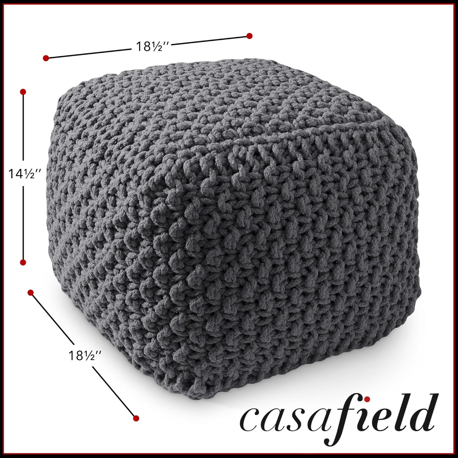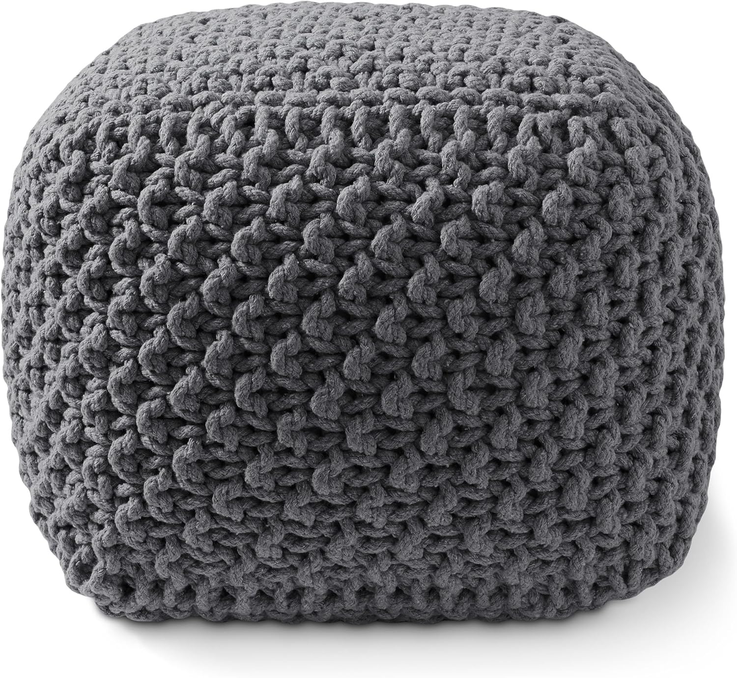 Casafield Square Pouf Ottoman, Dark Gray 18.5" W x 18.5" D x 14.5" H Cotton Knit Foot Stool - Boho Floor Pouffe for Living Room, Bedroom, Home Office
