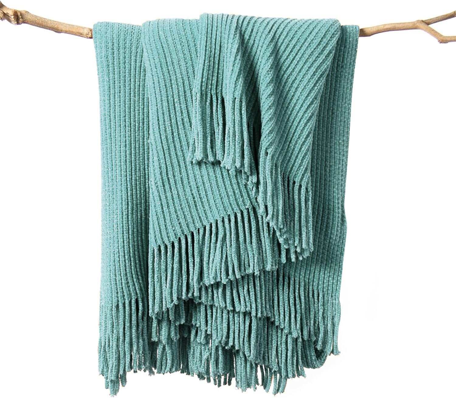 lifein Throw Blanket for Couch, Soft Boho Decor Bed Throw,Cozy Blue Chenille Knitted Small Farmhouse Lightweight Throw for Spring(Aqua,50 * 60")