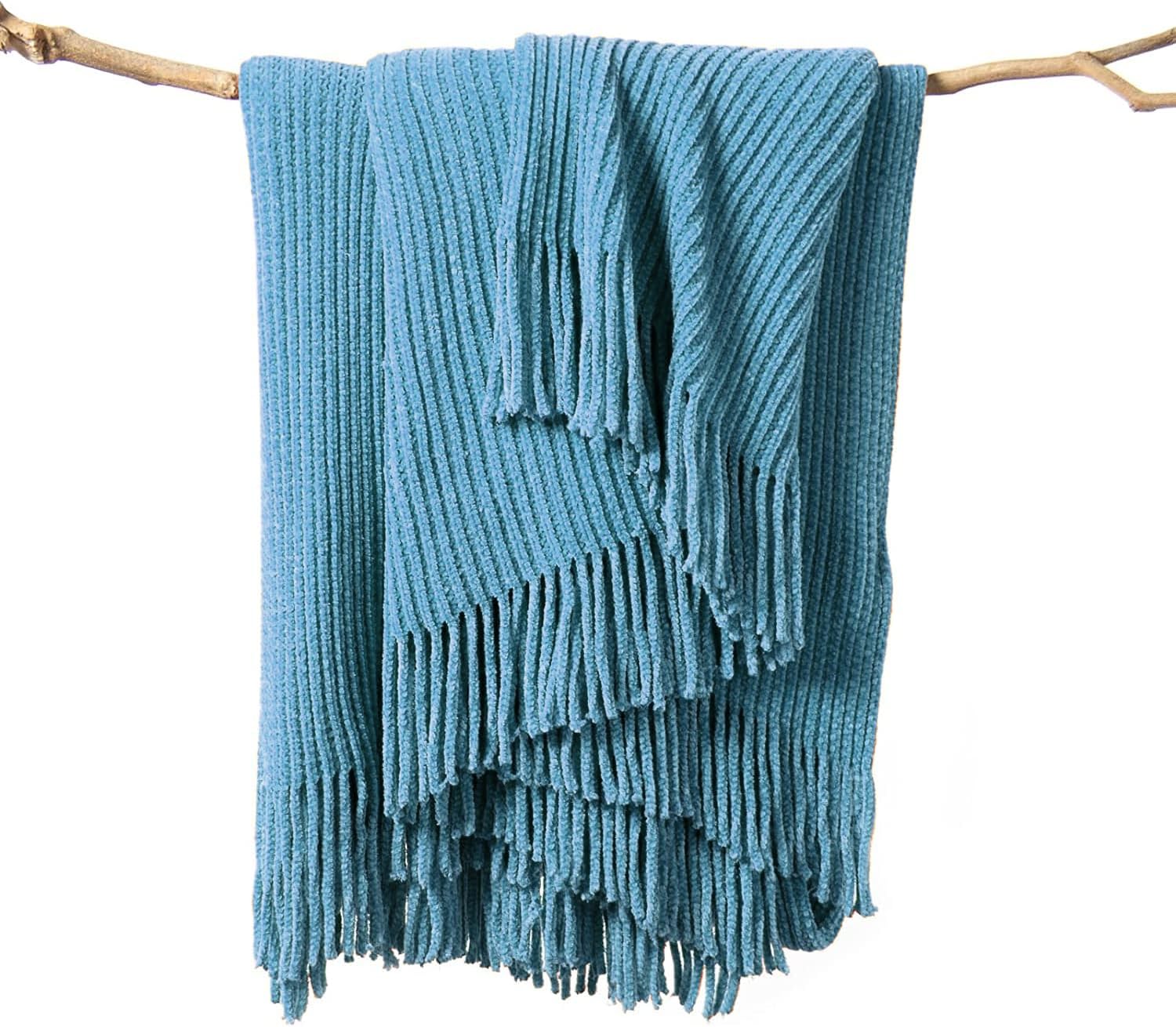 lifein Throw Blanket for Couch, Soft Boho Decor Bed Throw,Cozy Blue Chenille Knitted Small Farmhouse Lightweight Throw for Spring(Sky Blue,60 * 80")
