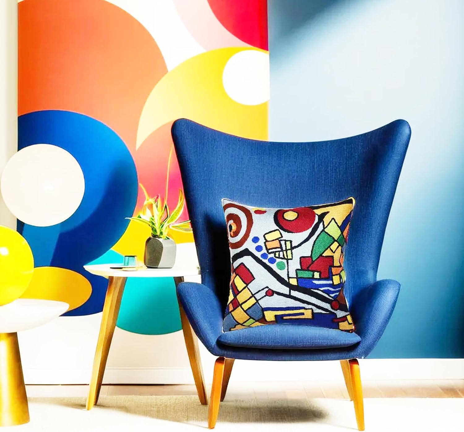 - ❤ Modern Throw Pillow Cover - Hand Embroidered: Our vibrant decorative pillow covers draw inspiration from Kandinsky's artistry and are meticulously hand-embroidered using soft wool. Our skilled artisans devote painstaking attention to detail, creating an extraordinary abstract pillow that enhances your home decor. An up-close look at this contemporary accent pillow reveals the exquisite craftsmanship of fine chain-stitch hand embroidery.