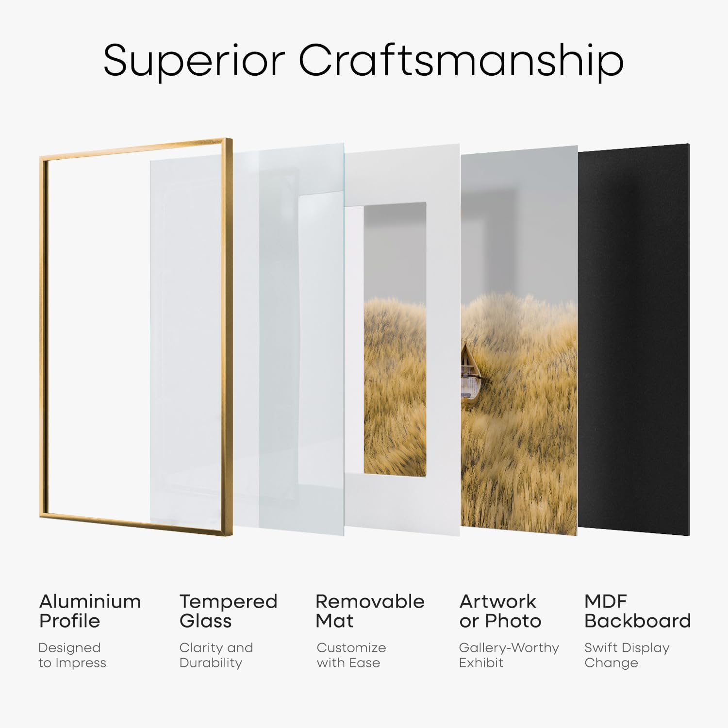 - GALLERY GRADE GLASS, TRUE CLARITY. Why settle for cloudy plexi? Our ultra-clear tempered glass sharpens every detail and adds instant polish to your photo or print.