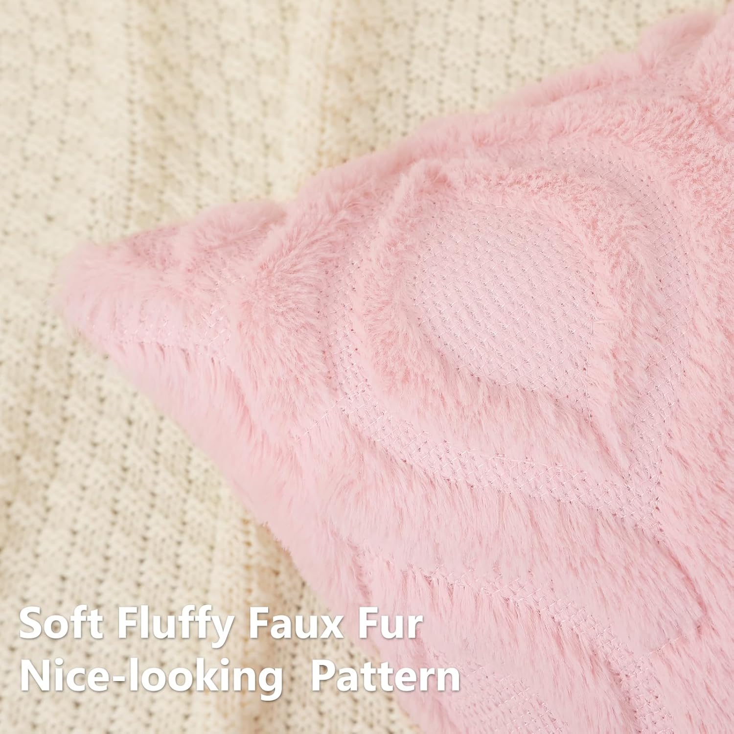 decorUhome Throw Pillow Covers 12x20 Inch Set of 2, Soft Plush Decorative Faux Fur Light Pink Solid Couch Pillow Covers, Accent Farmhouse Neutral Lumbar Euro Pillow Cases for Sofa Bed Living Room