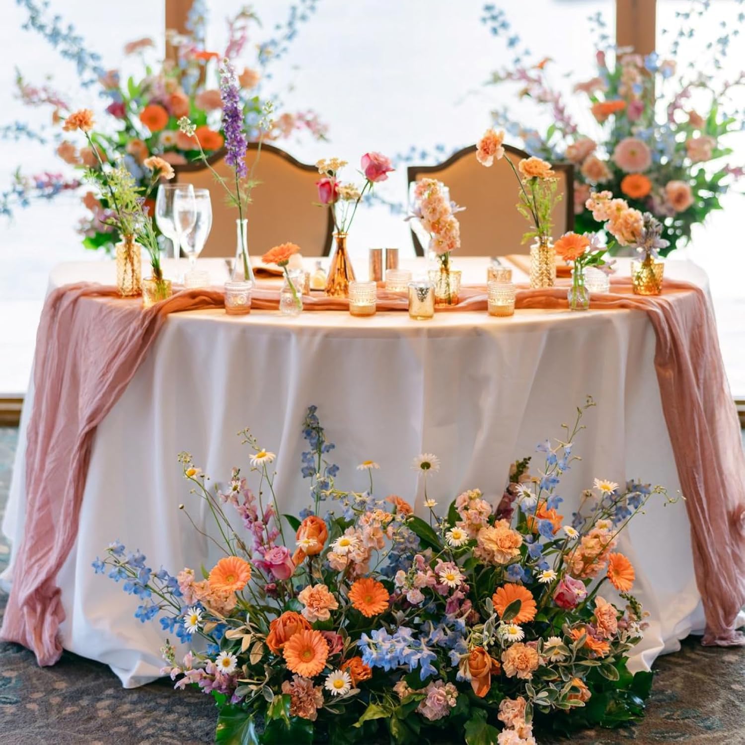 - 【Diversified Use】Boho cheesecloth Table Runner is necessary choice for beautifying tables. It's used for home decor, outdoor events, formal and informal setting in all seasons. Such as wedding decor, baby shower, bridal showers, parties, engagement banquet, Valentine's Day, Thanksgiving, Christmas.