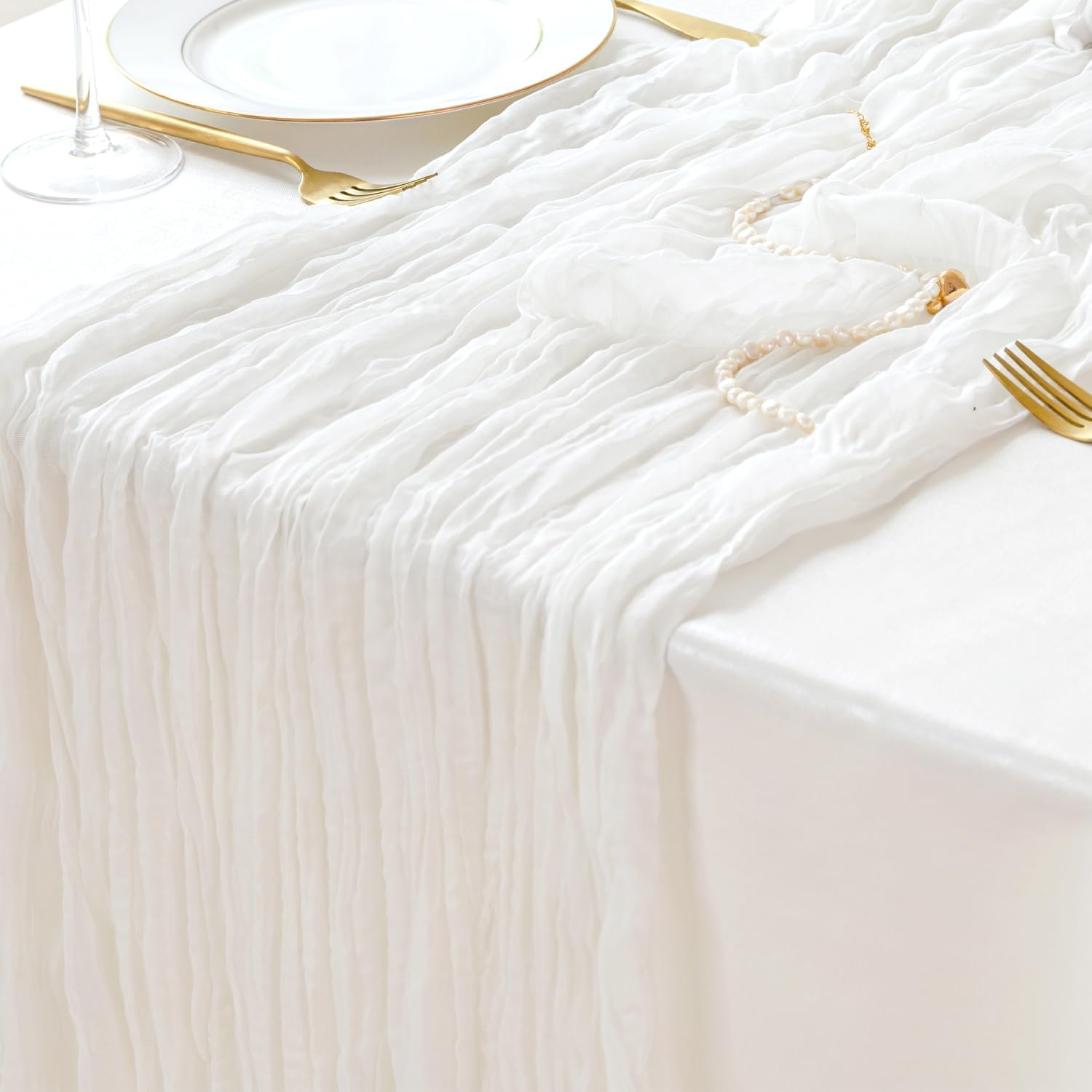 - 【Package Includs】1pcs Cheesecloth table runner (35" W x 120" L), neatly packed in a transparent plastic bag. This versatile table runner is specifically designed to fit most types of tables.