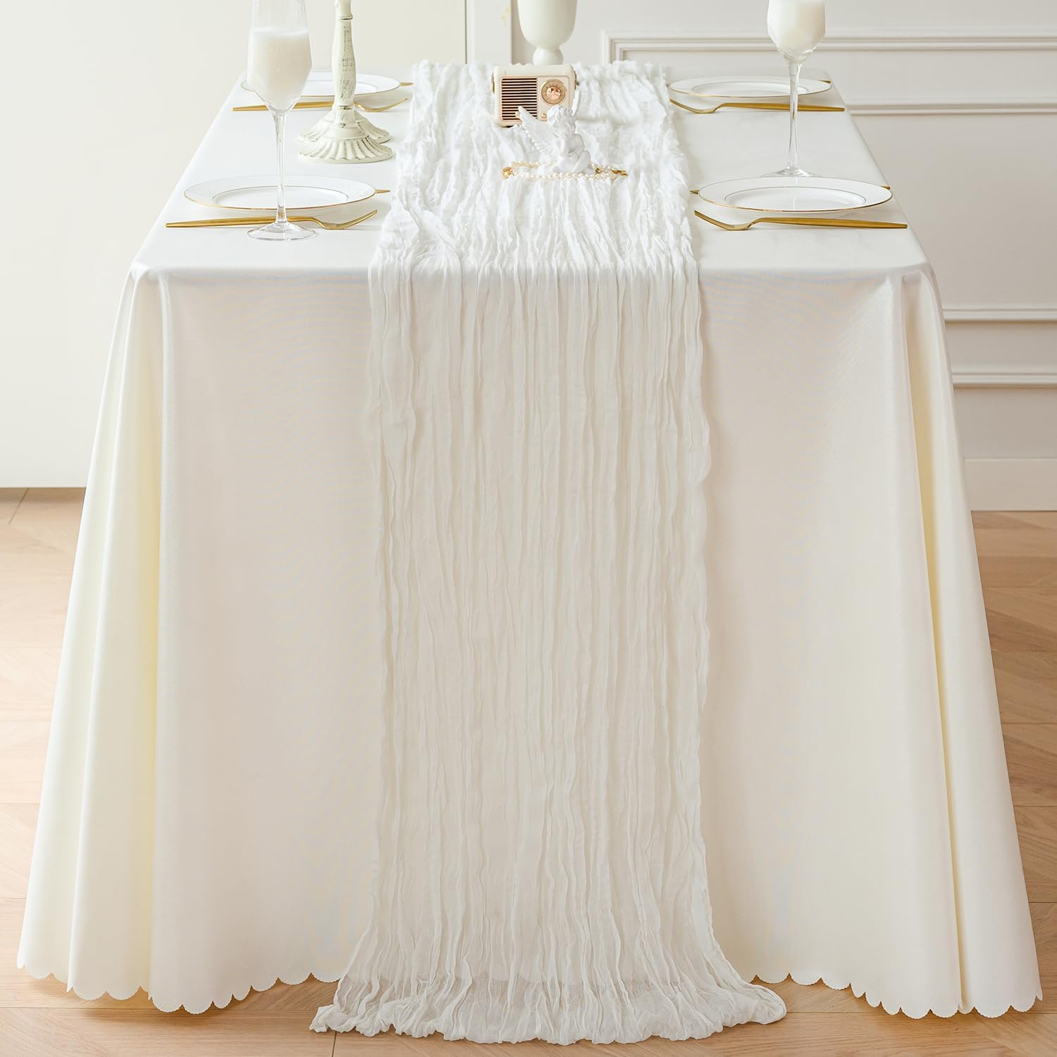 Sioloc Ivory White Cream Cheesecloth Table Runner Fall Autumn Decor for Home 10ft Table Cloth for Tea Wedding Birthday Party Baby Bridal Shower Halloween Thanksgiving