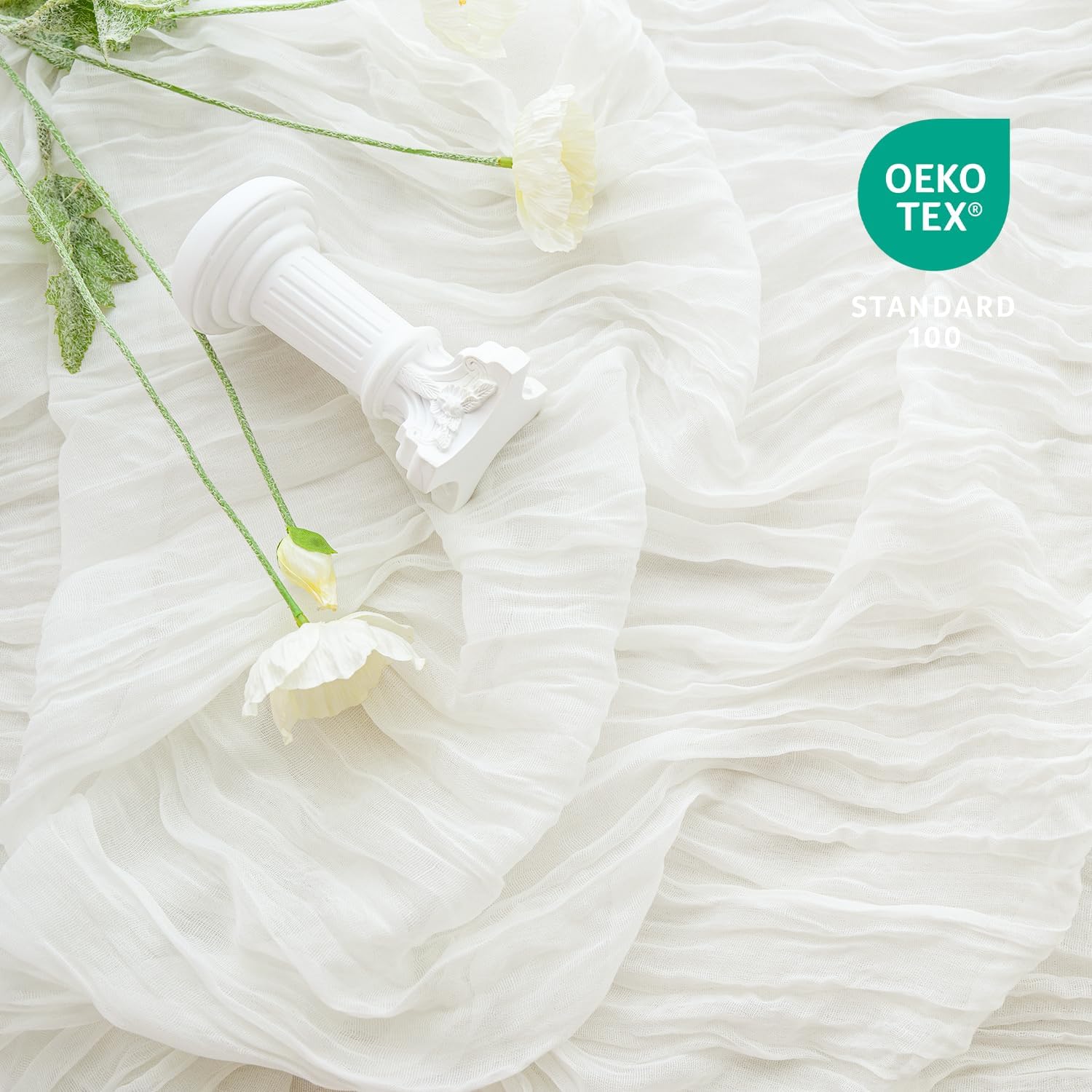 - 【Premium Fabric】Crafted from cheese cloth with manual dying process, soft to the touch and the fabric make the table runner sheer enough to sway in the wind. Pleating craft, bring a vintage-rustic style to your table decor, heighten the elegance of your banquet or wedding tables.