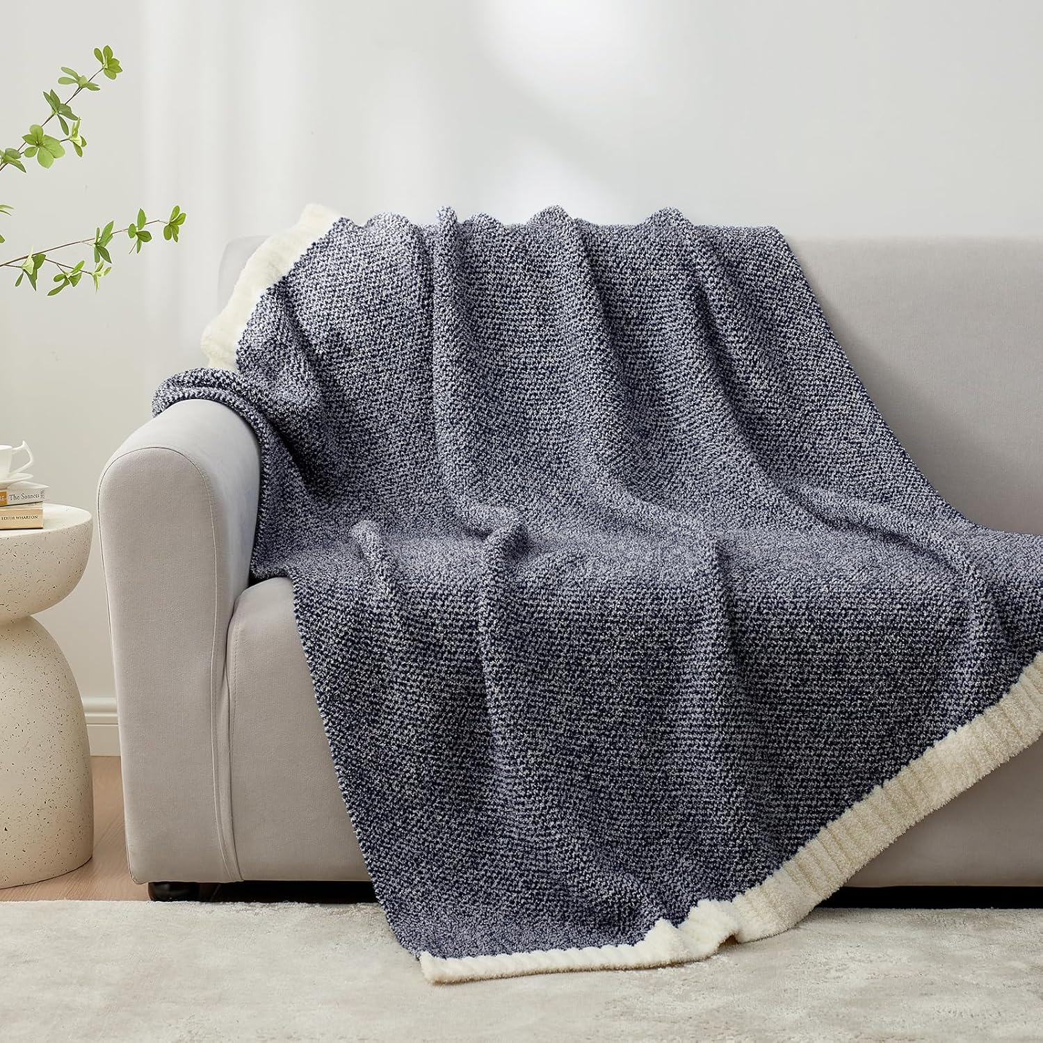 Snuggle Sac Heather Navy Throw Blanket for Couch, Super Soft Warm Microfiber Blankets Navy Blue, Cozy Knit Fuzzy Plush Lightweight Throws for Sofa, Bed, Heather Navy,50x60 inches