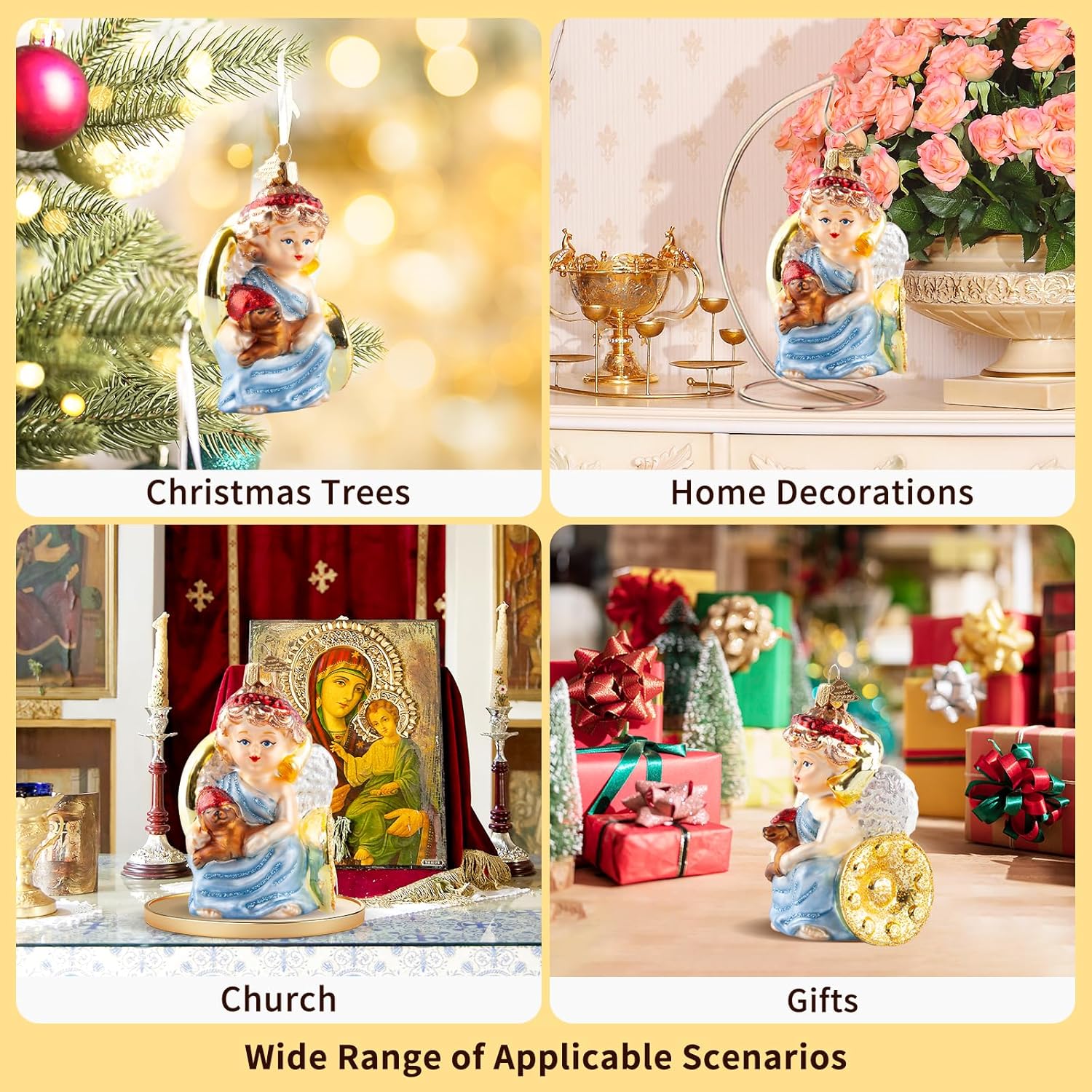 Angle Christmas Ornaments,Hand-Blown Glass Ornaments for Christmas Tree, Angle Watcher Collection Figurine Hanging Ornament,Glass Christmas Decorations for Angle Lovers Holiday Party Home Gifts