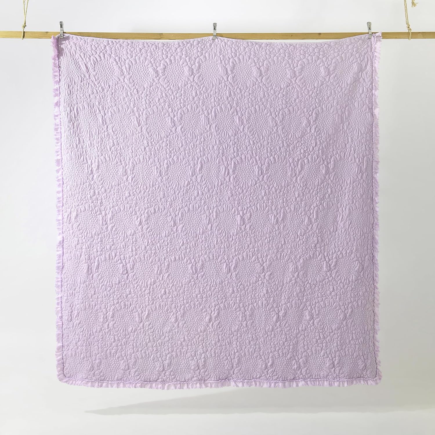 HORIMOTE HOME Lavender Ruffled Quilt Twin Size, Stone-Washed Microfiber Lightweight Crinkled Farmhouse Rustic Shabby Chic Bedding Set, 2 Pieces Reversible Bedspread with Pillow Sham for All Season